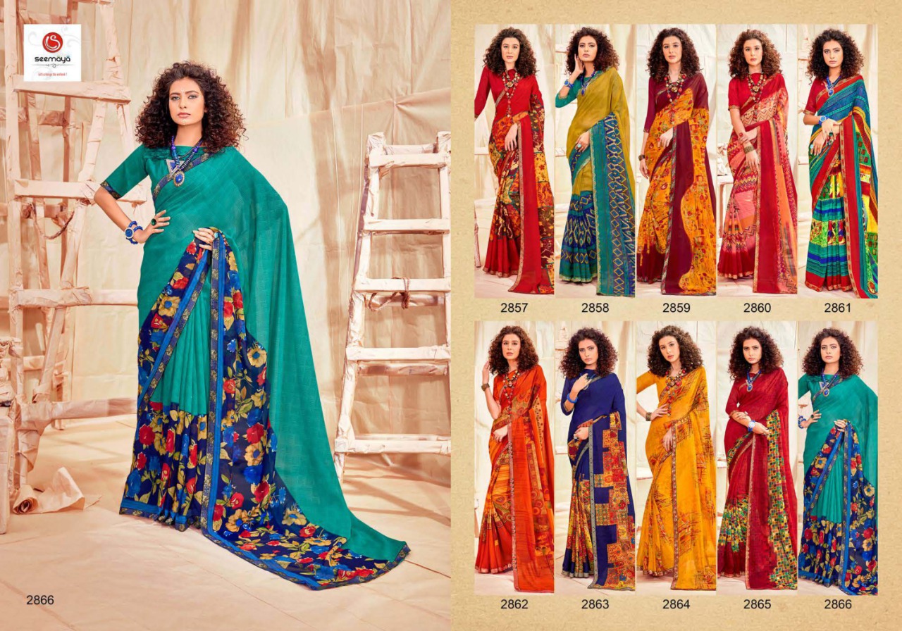 Hungama By Seemaya Fancy Print With Border Daily Wear Saree At Lowest Rate