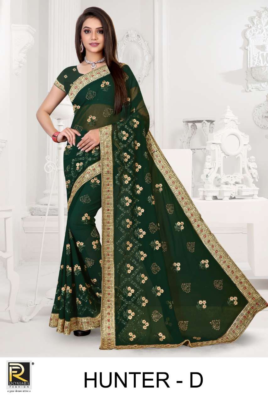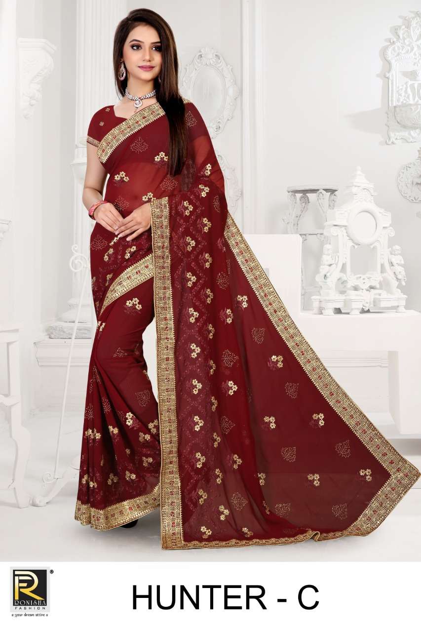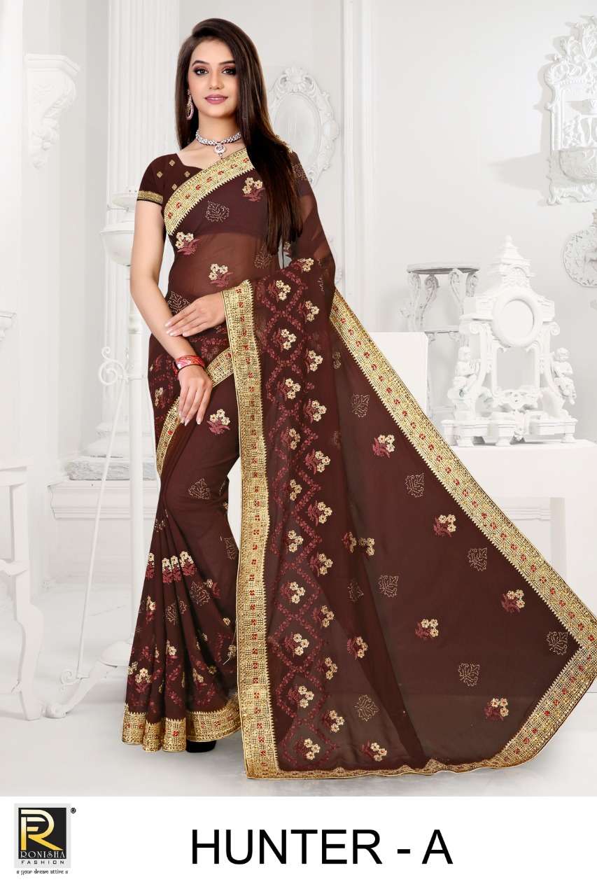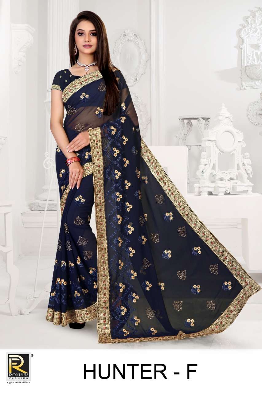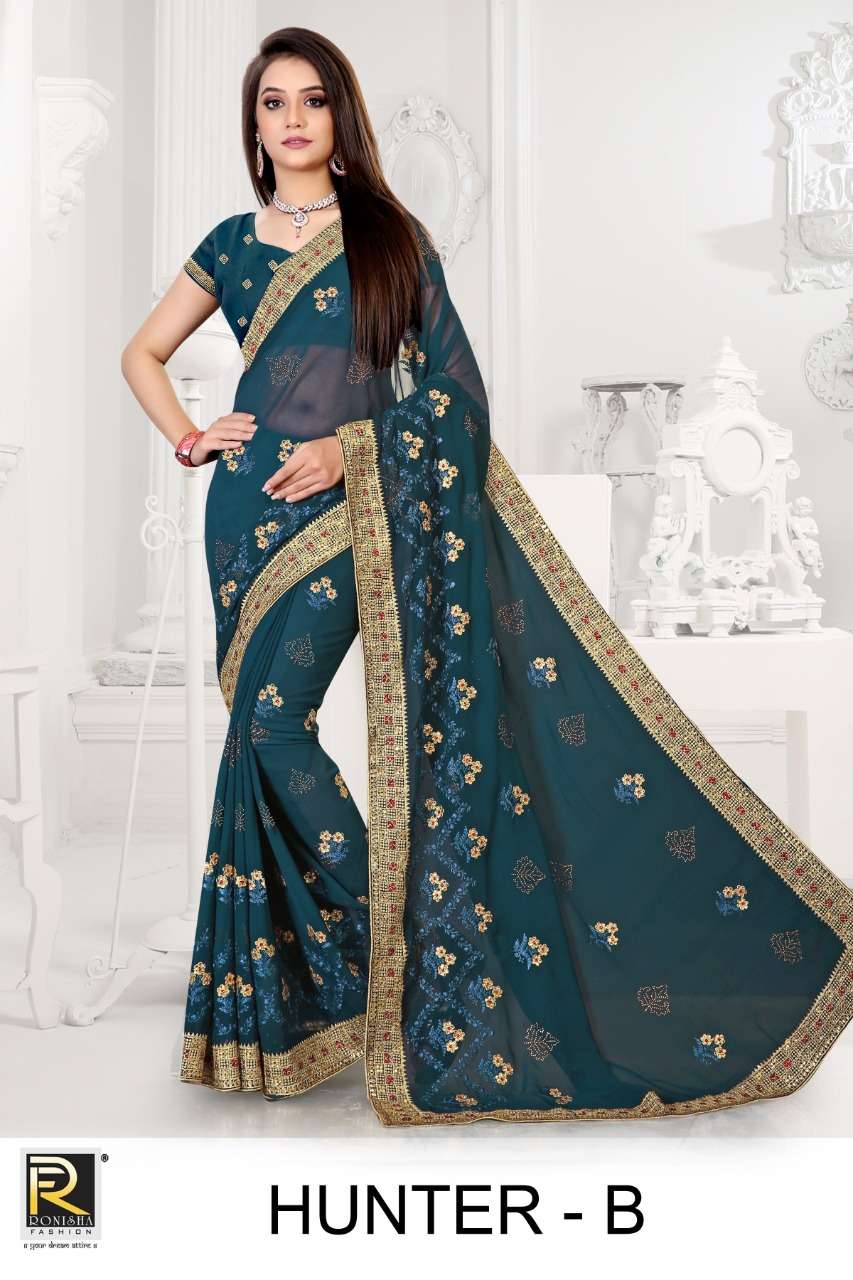 Hunter by ranjna saree fancy embroidery warked heavy diamond designer saree collecton