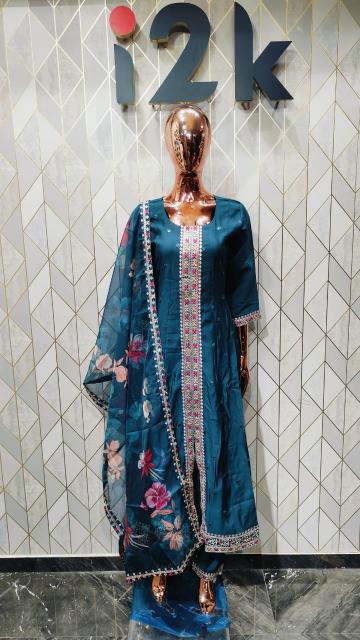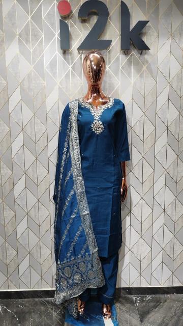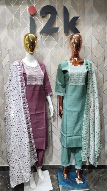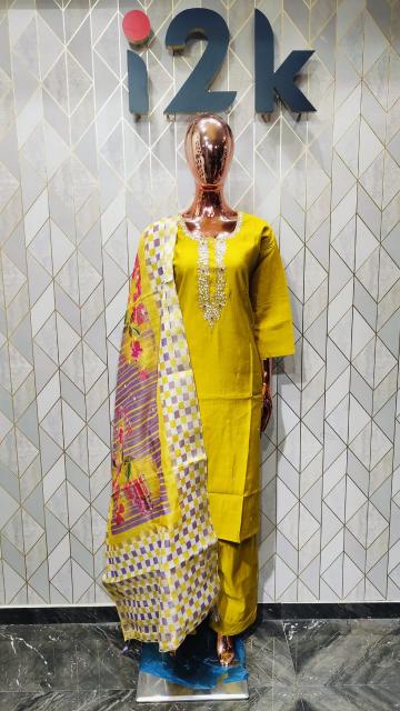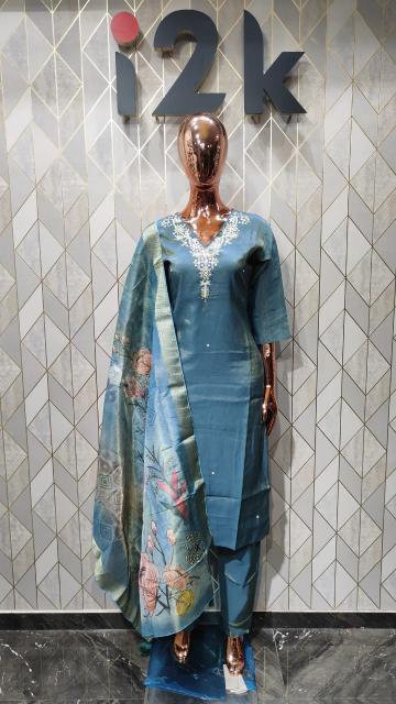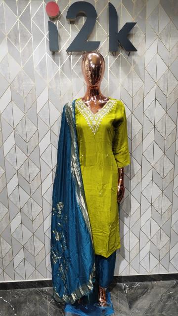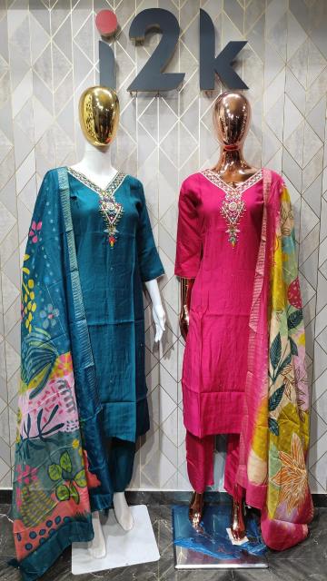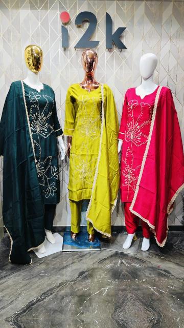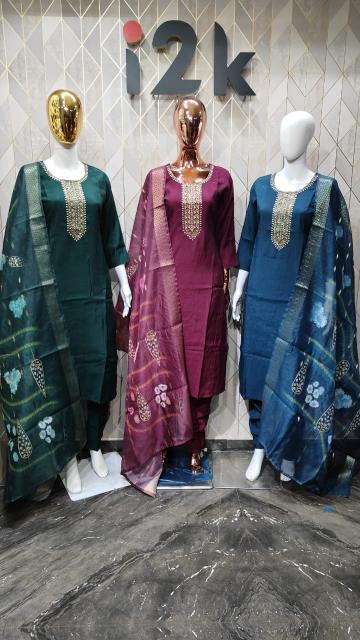 i2k roman silk attractive look readymade combo trendy 3pcs dress