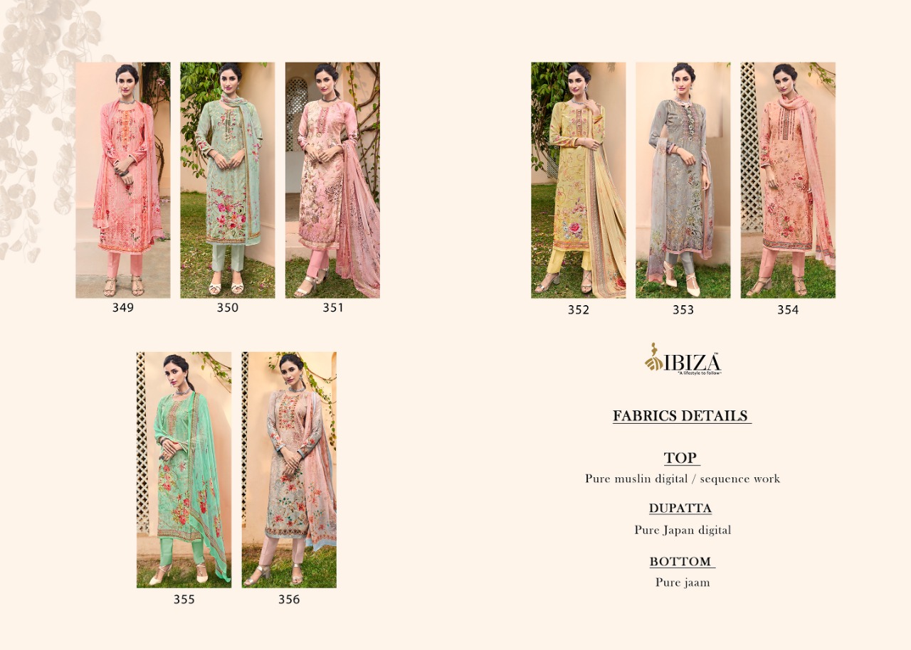 IBIZA ELISE Top -: *PURE MUSLIN WITH FANCY SEQUENCES WORK * Dupatta-: PURE JAPAN DIGITAL Bottom-: PURE JAAM HSN -: 5407 Price-: 1395/- |