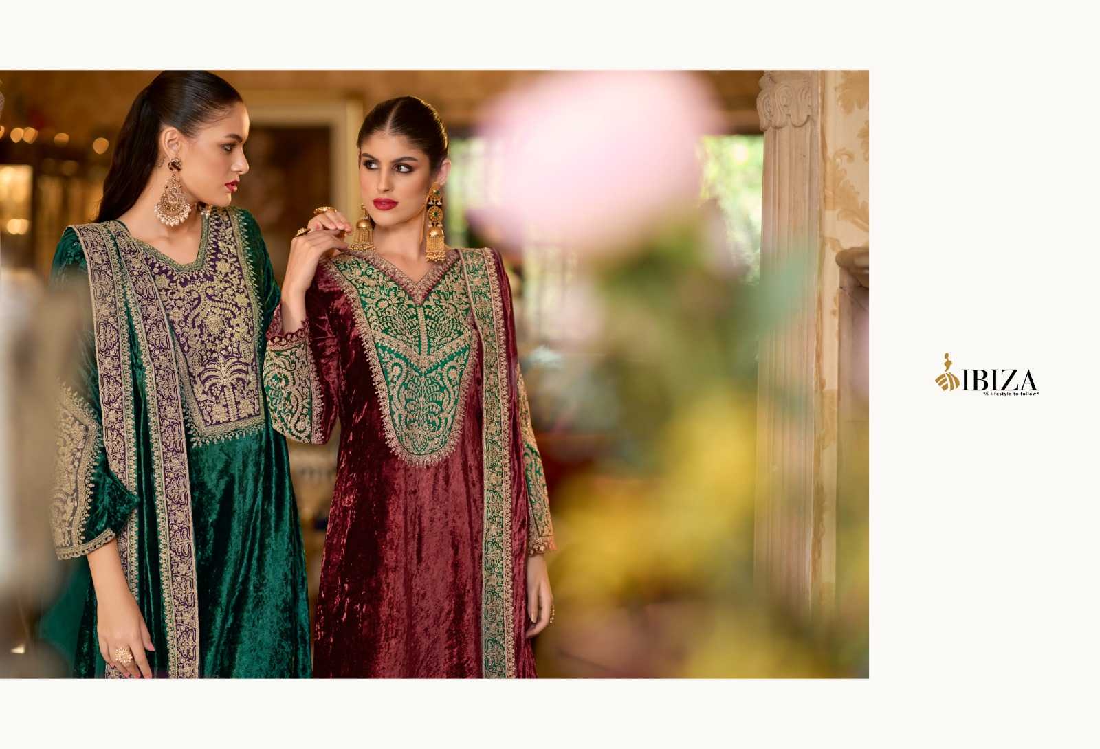 ibiza lifestyle delhi 6 designer viscose velvet festive winter wear suits wholesaler