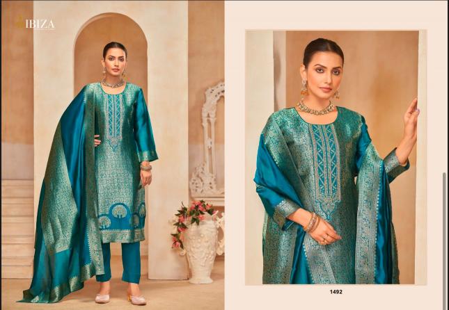 🙏🙏🙏IBIZA🙏🙏🙏 NEW SERIES ✌🏻SAKHI VOL-7✌🏻 👊Fabric Details👊 👗Top:-PURE BANGLORY SILK JACQUARD WITH EMBROIDERY WORK 👖Bottom:-PURE SANTOON 🔻Designs: 4 PCS Rate: 1795/- Regards |
