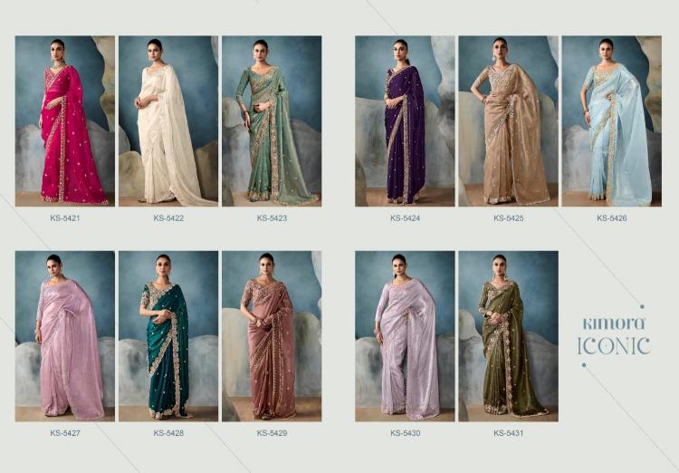 iconic by kimora 5421-5431 tissue with handwork designer part wear sarees