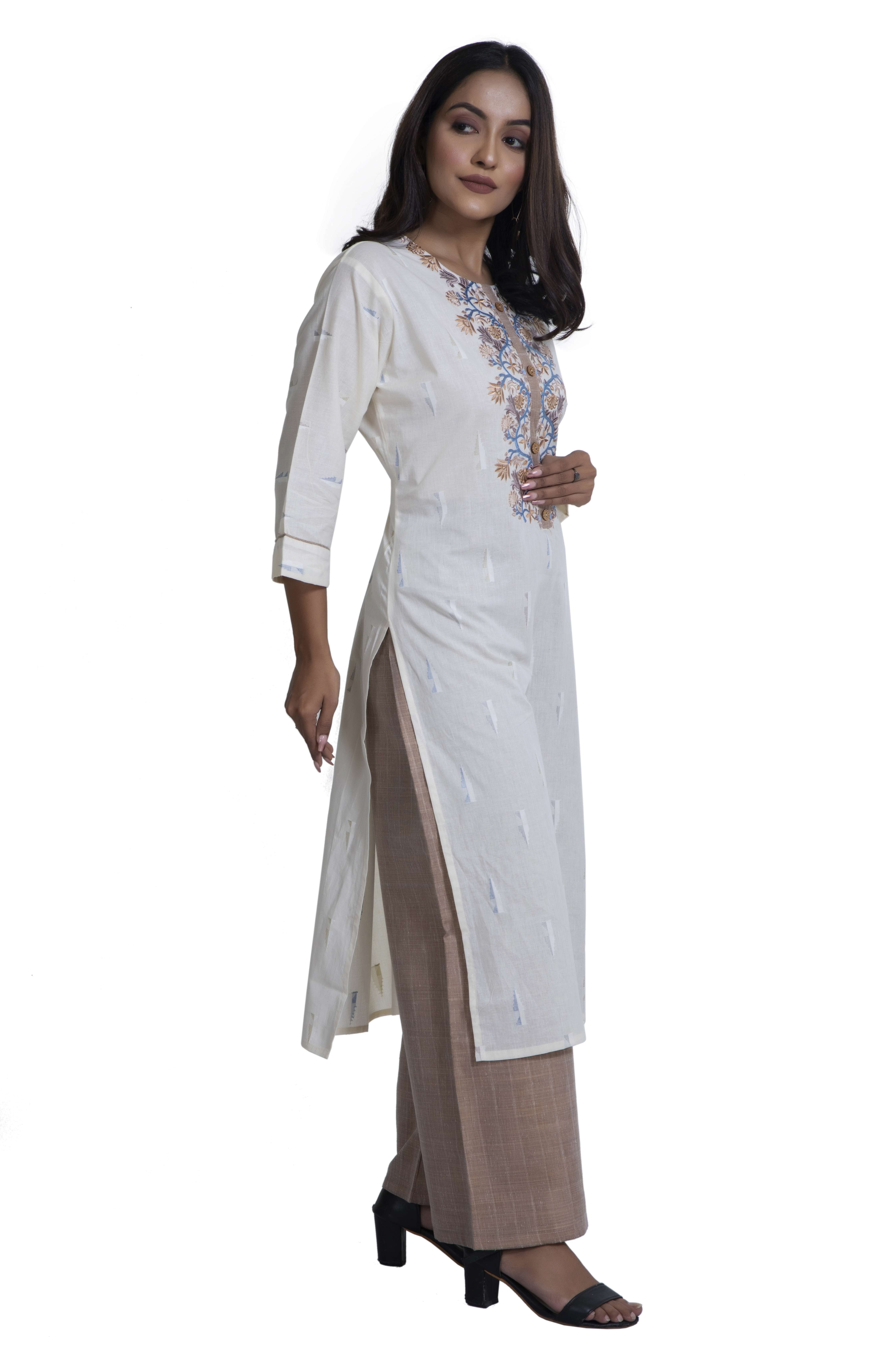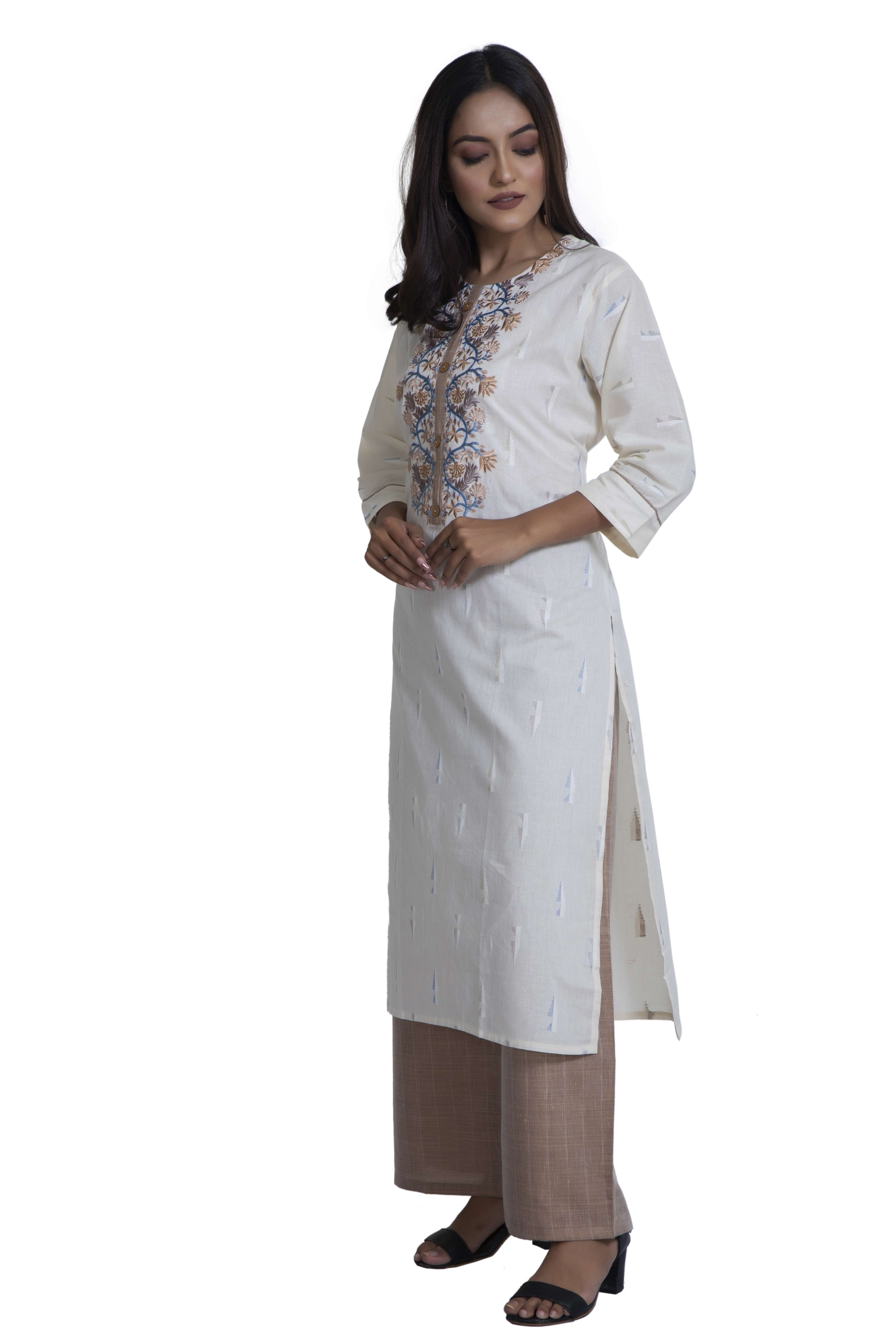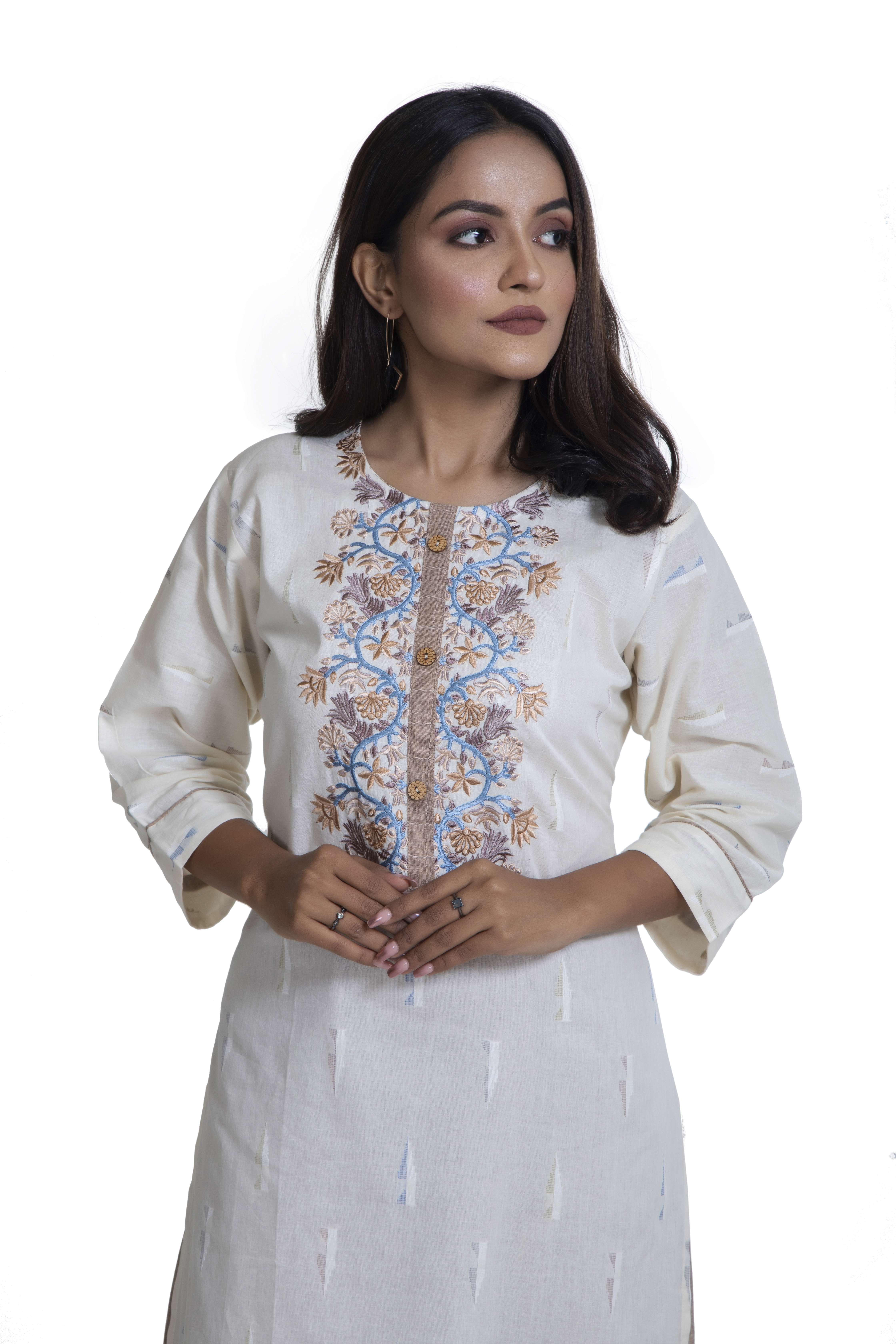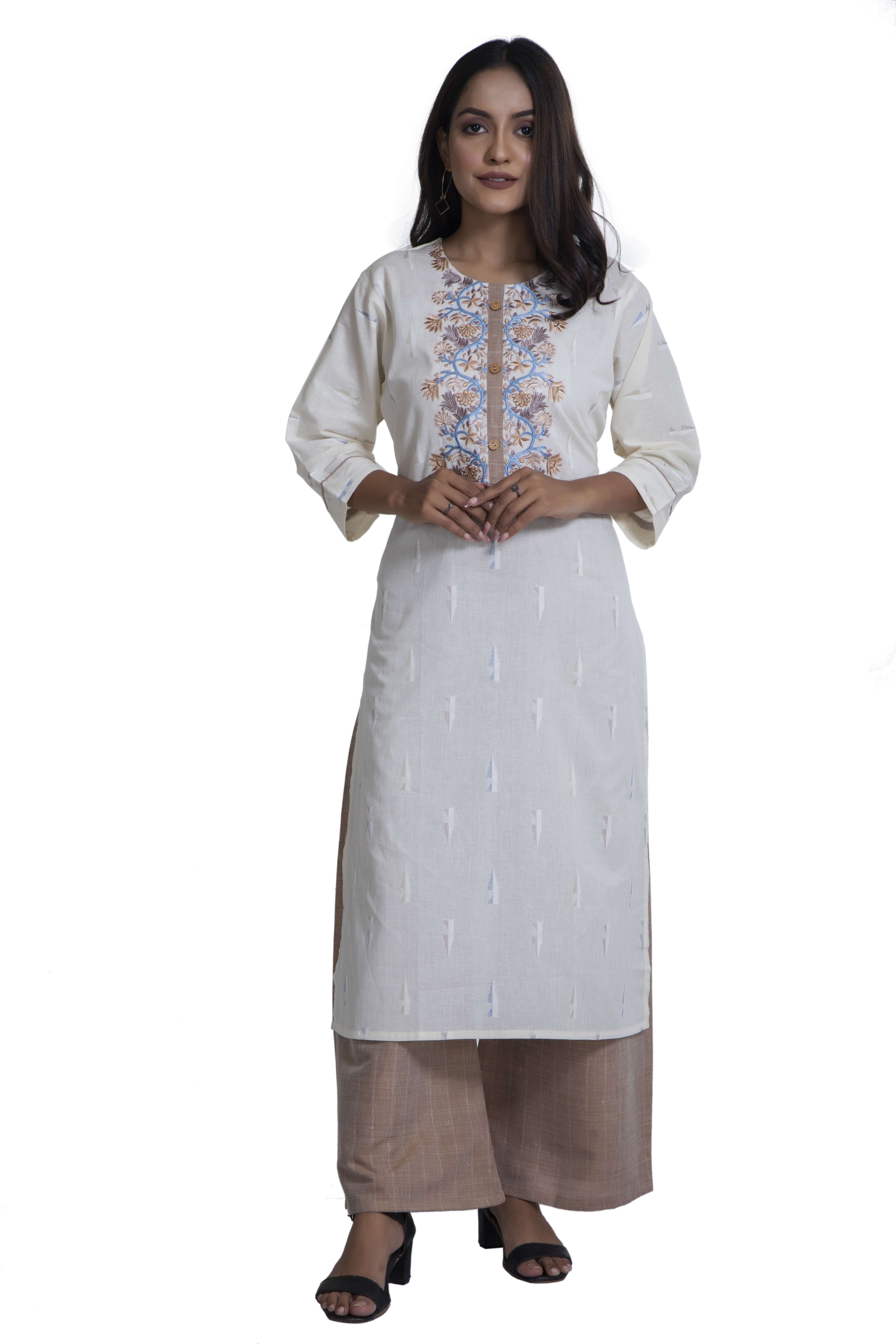Ikkat Cotton Print With Embroidery And Plazo