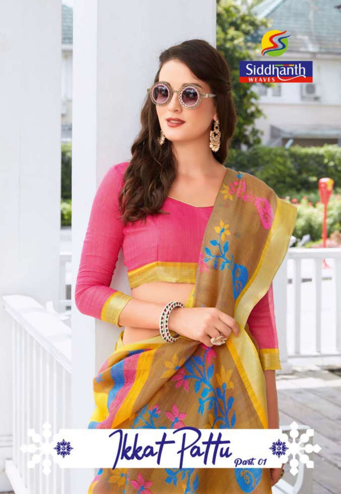 ikkat pattu by siddhanth weaves cotton printed saree collection