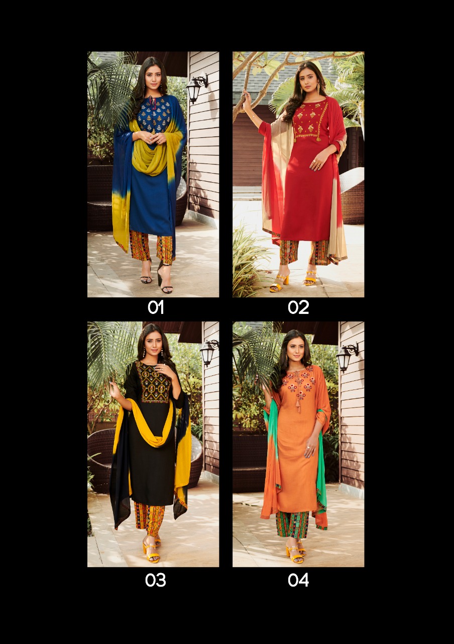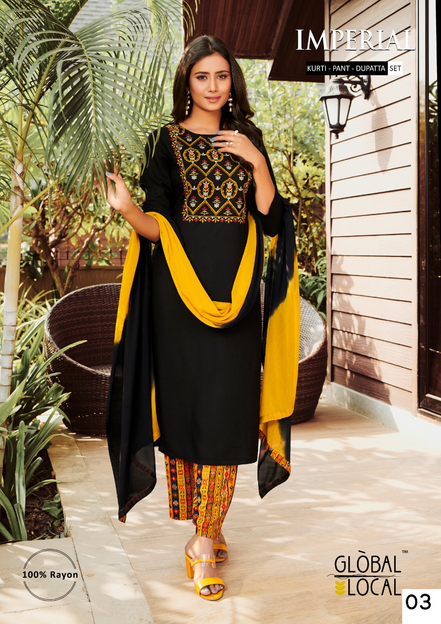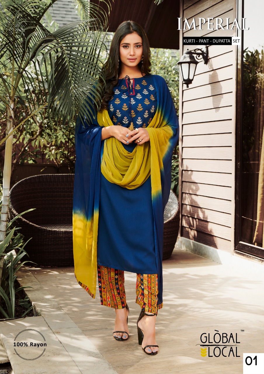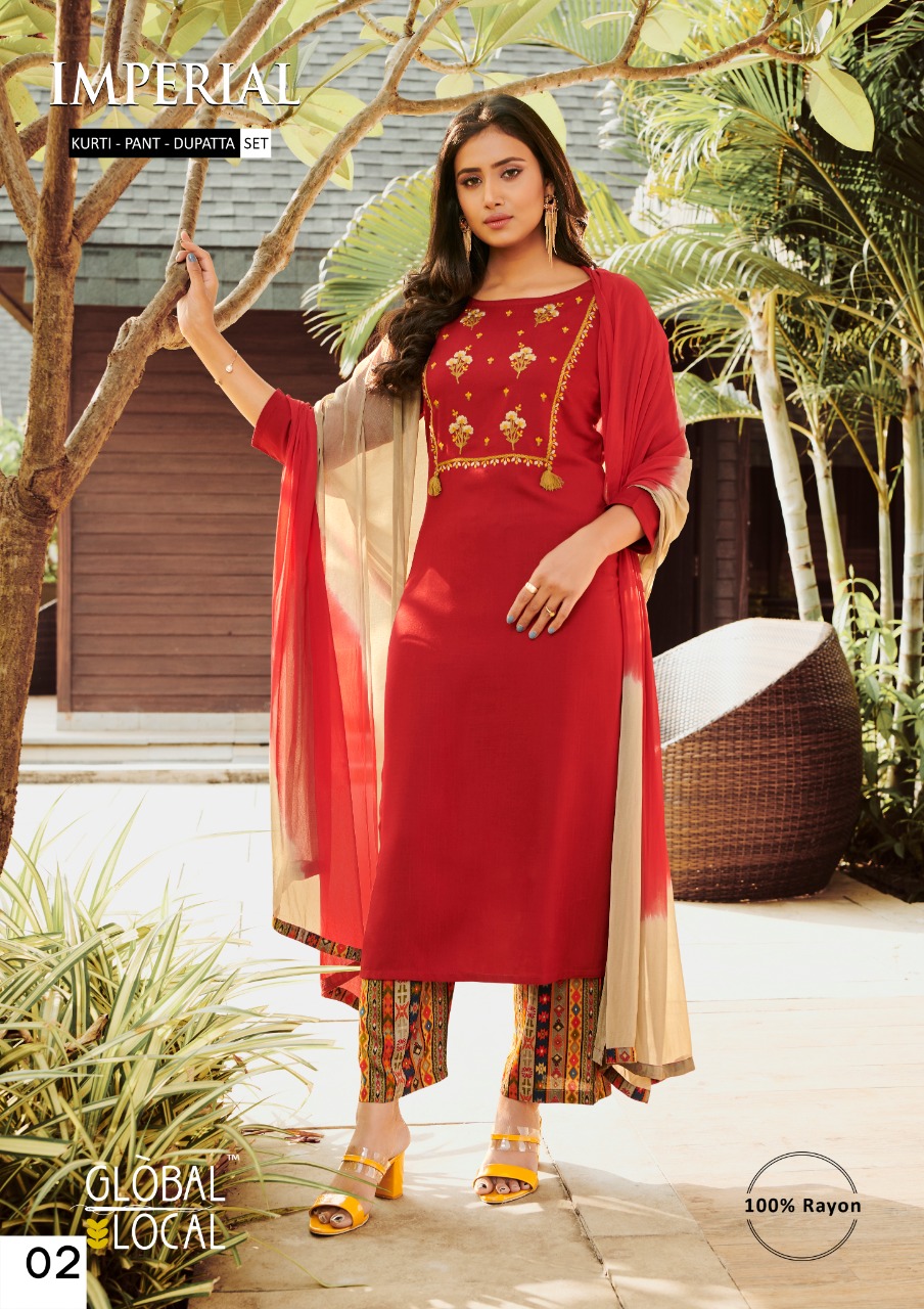 Imperial By Global Local Rayon Embroidery Work Readymade Kurti Pant With Dupatta