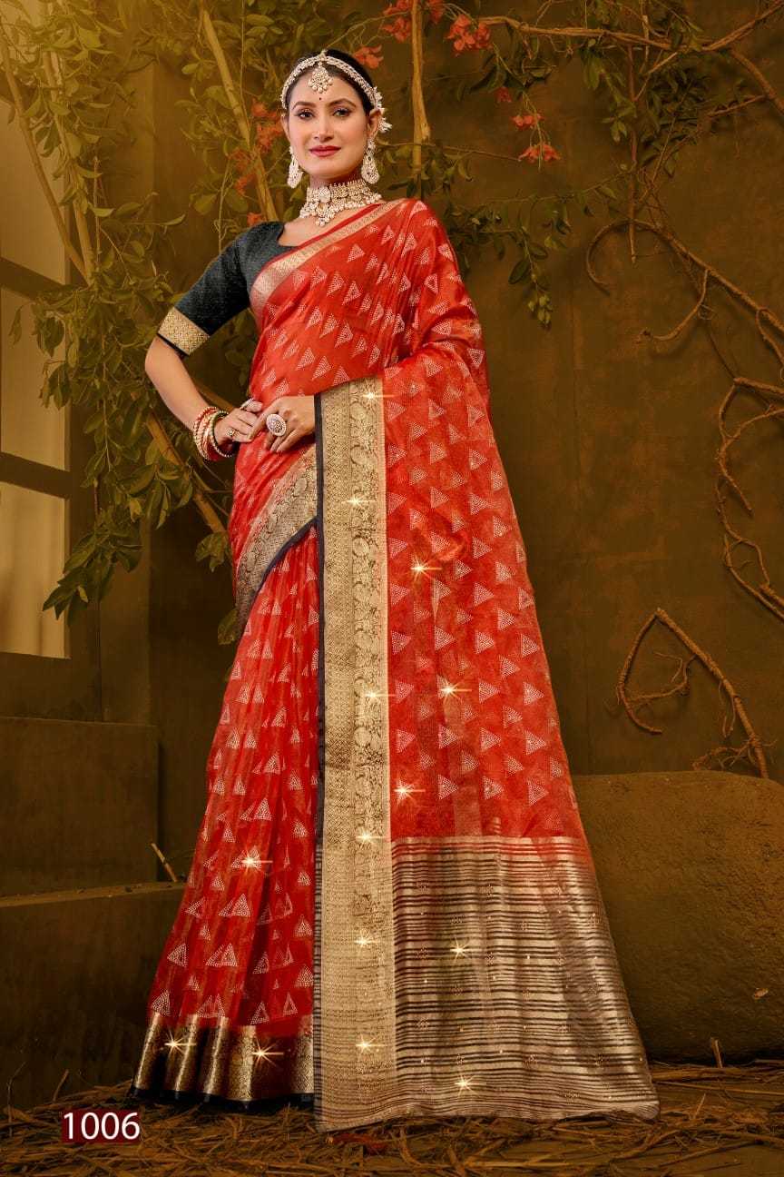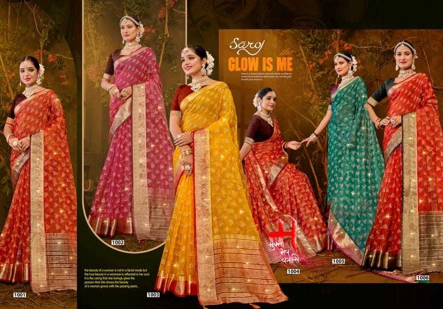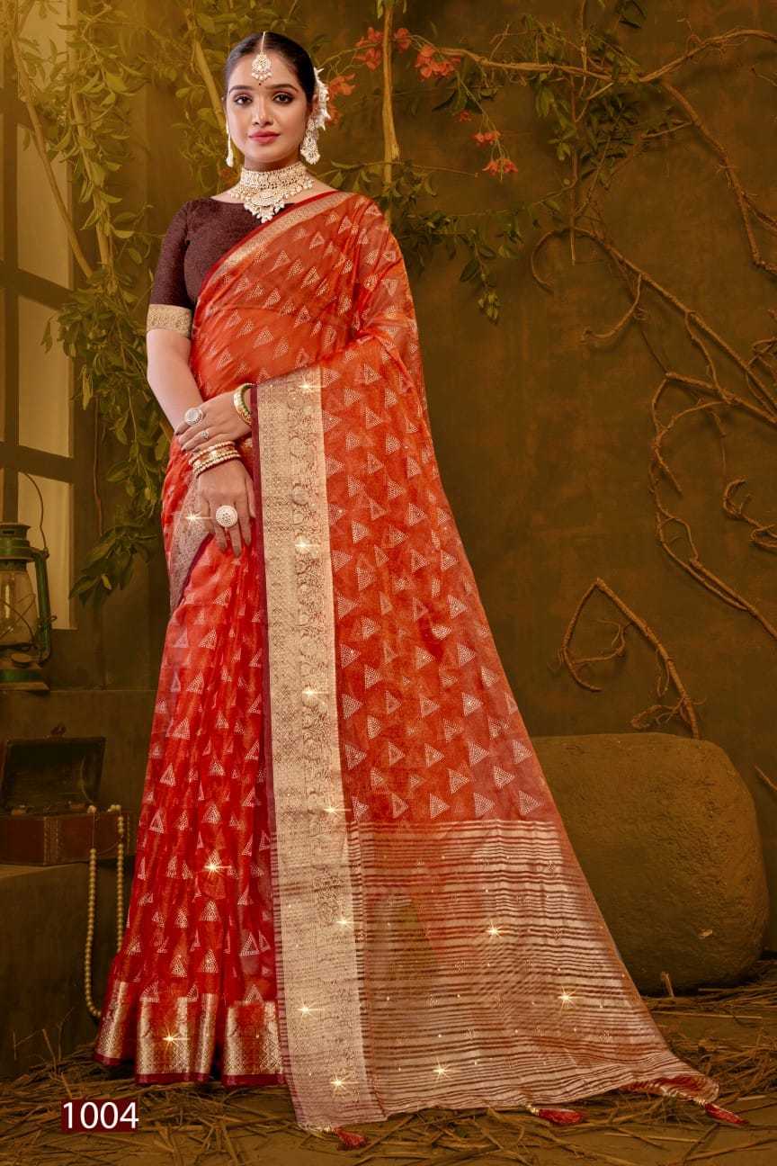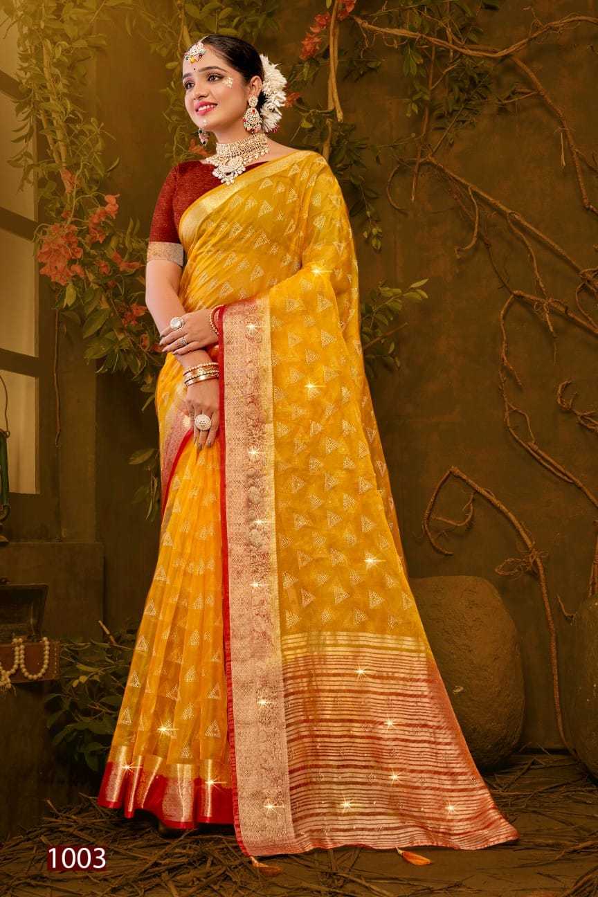 Saroj Saree Imperial Gold vol 2 KHADI Organja Saree with Heavy Swaroski Rate-₹605/- per pcs GST EXTRA Set to set |
