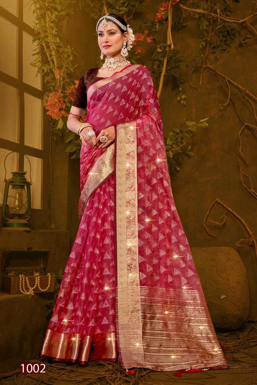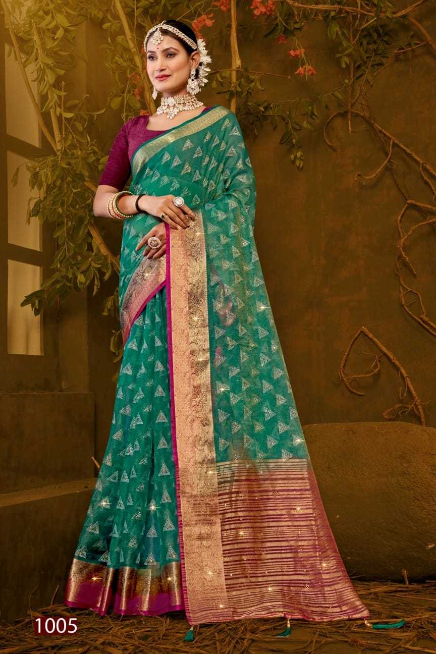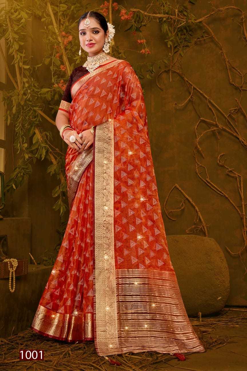 Saroj Saree Imperial Gold vol 2 KHADI Organja Saree with Heavy Swaroski Rate-₹605/- per pcs GST EXTRA Set to set |