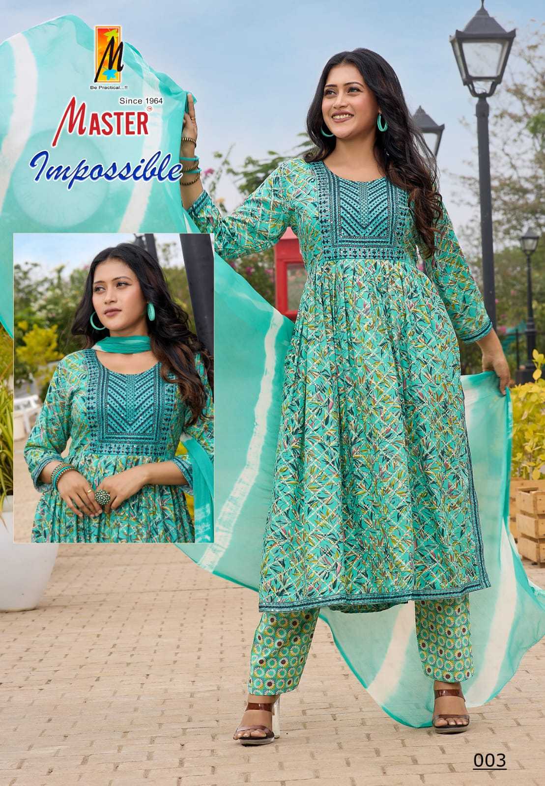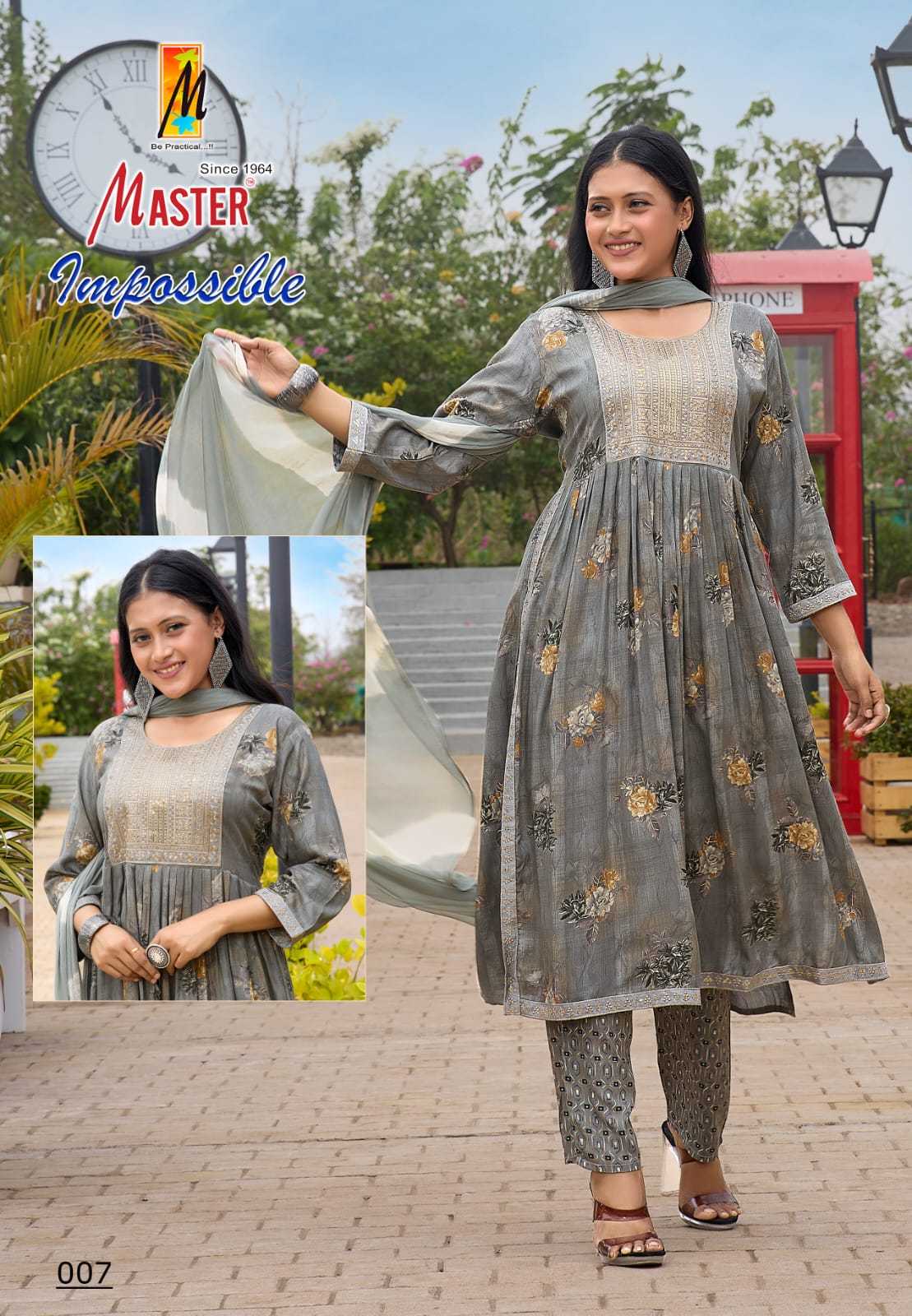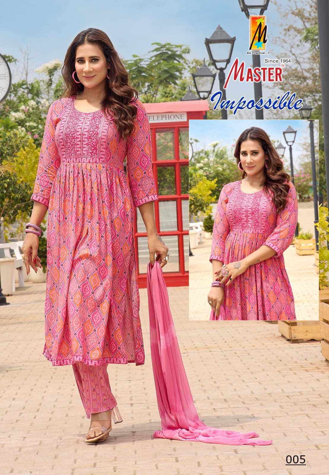 impossible by master stylish nayra cut rayon foil pretty look readymade 3pcs dress