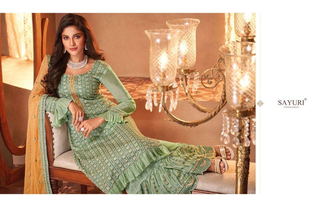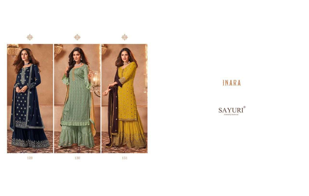 SAYURI DESIGNER INARA(3 PCS) FABRIC DETAILS TOP - REAL GEORGETTE WITH DULL SANTOON INNER PRICE -2099 per pcs |