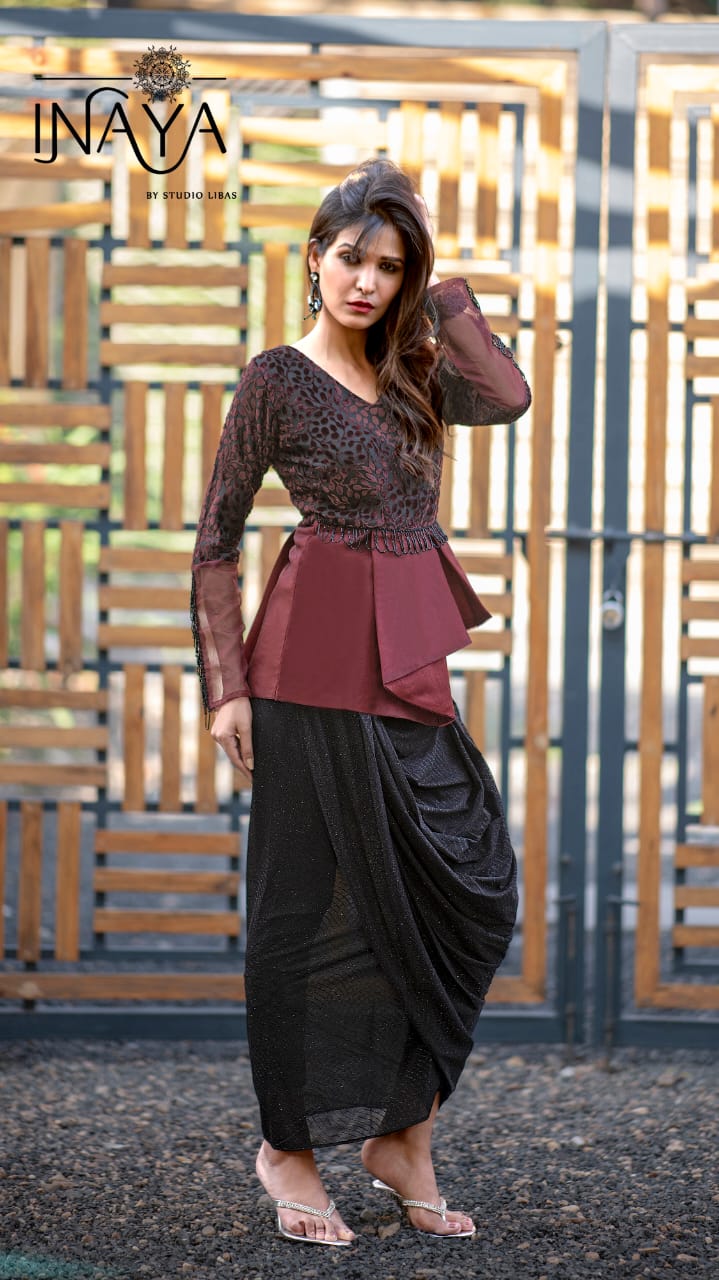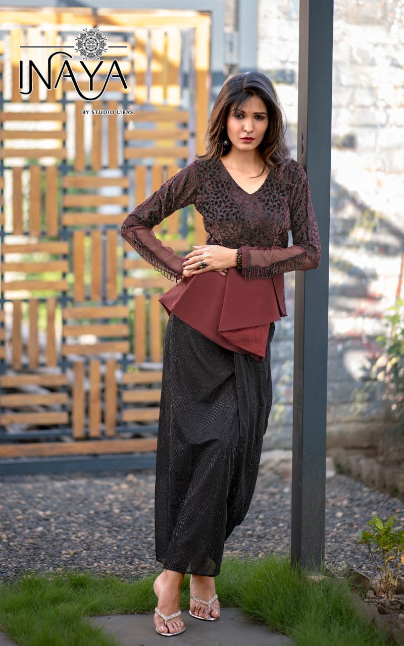 Inaya By Libas Studio Presents Lpc 77 Brasso Velvet Glamours Look Top With Designer Dhoti Skirt