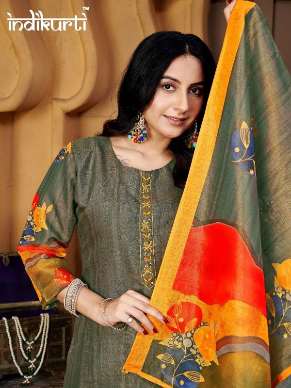 indikurti twisha readymade linen shimmer casual combo set 3pcs dress