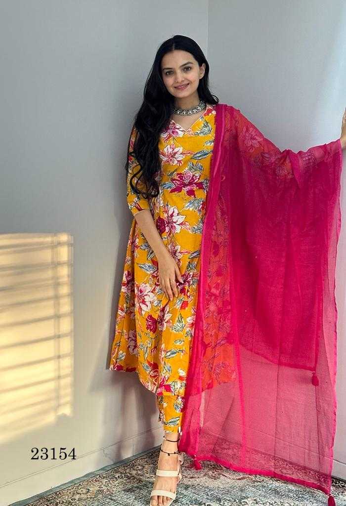 indira apparel 23154 casual wear readymade top bottom dupatta combo set