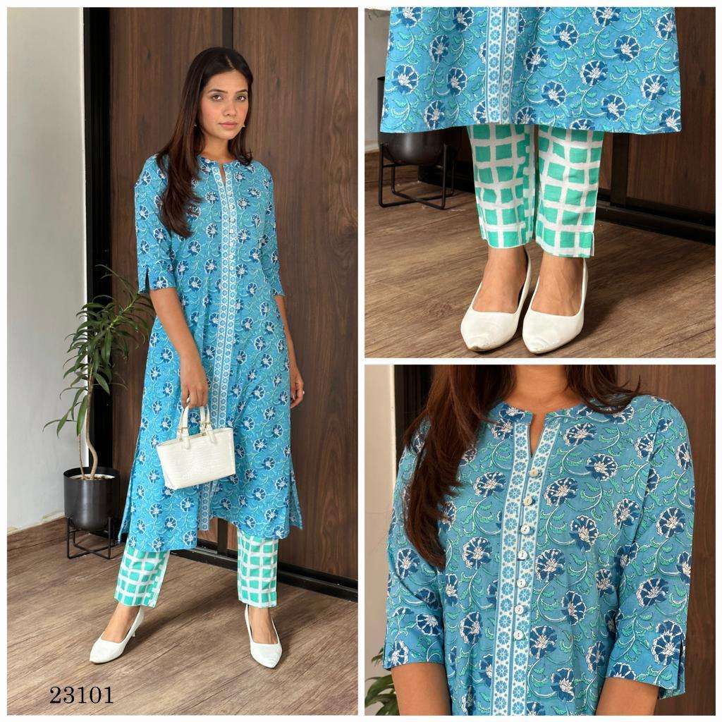 indira present 23101 readymade a line style kurti with pant combo set