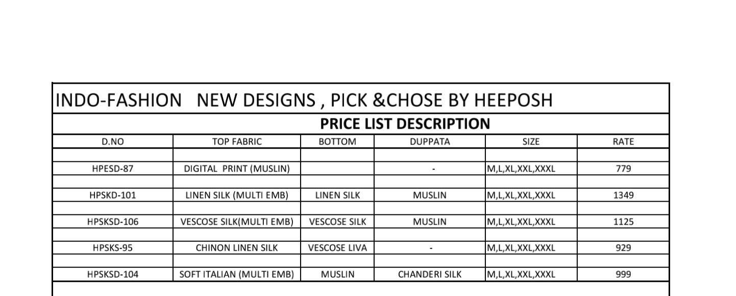 INDO FASHION BY HEEPOSH PICK & CHOOSE DESIGN RATELIST ATTACHD AS PER DESIGN WHATS APP FOR MORE DETAIL |