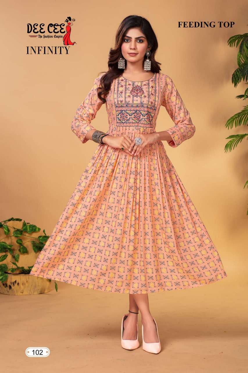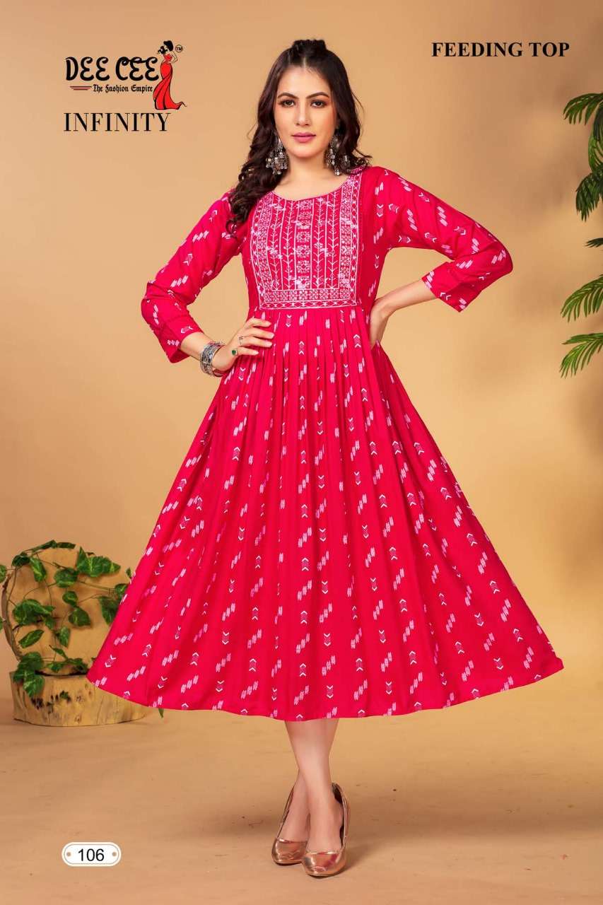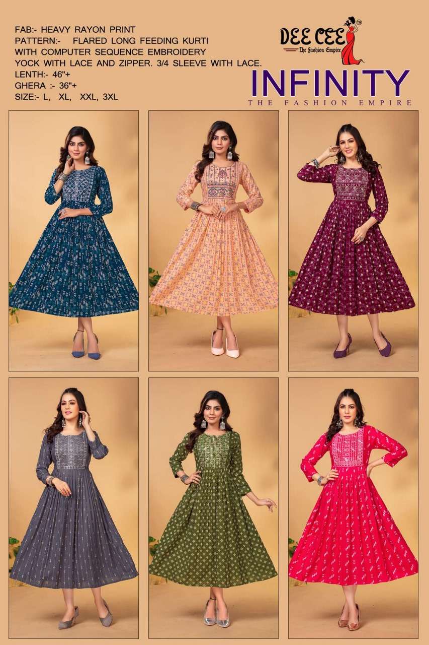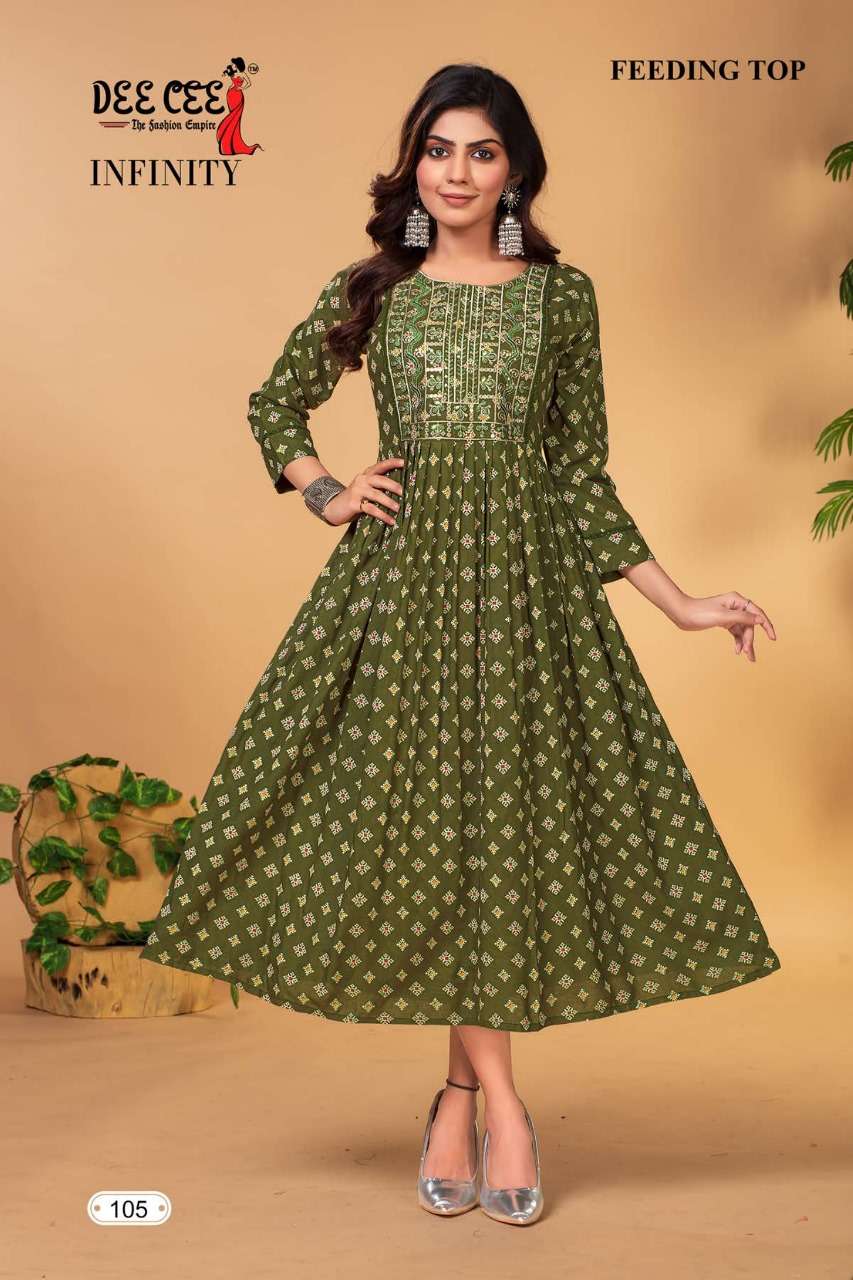 infinity by dee cee new pattern flair long feeding kurti readymade collection