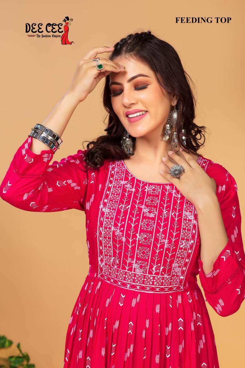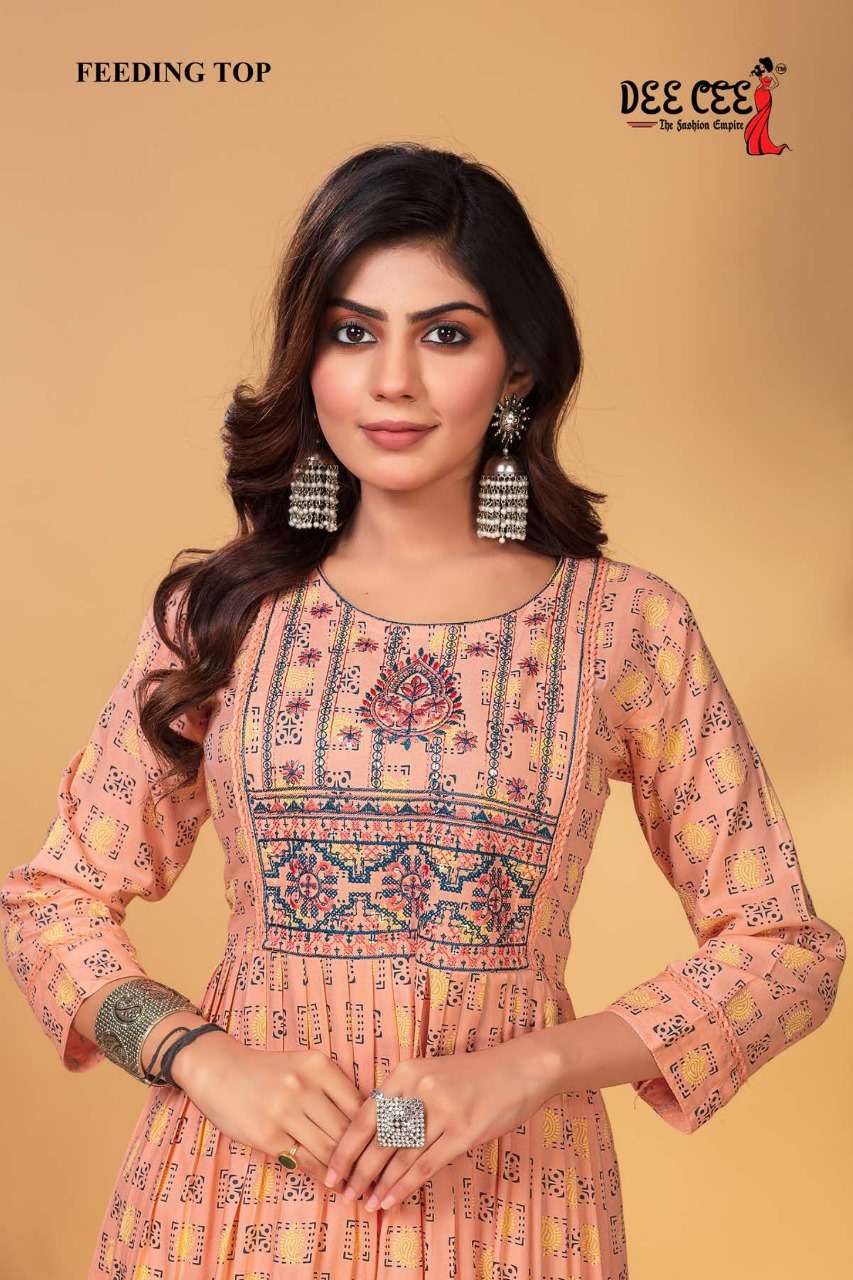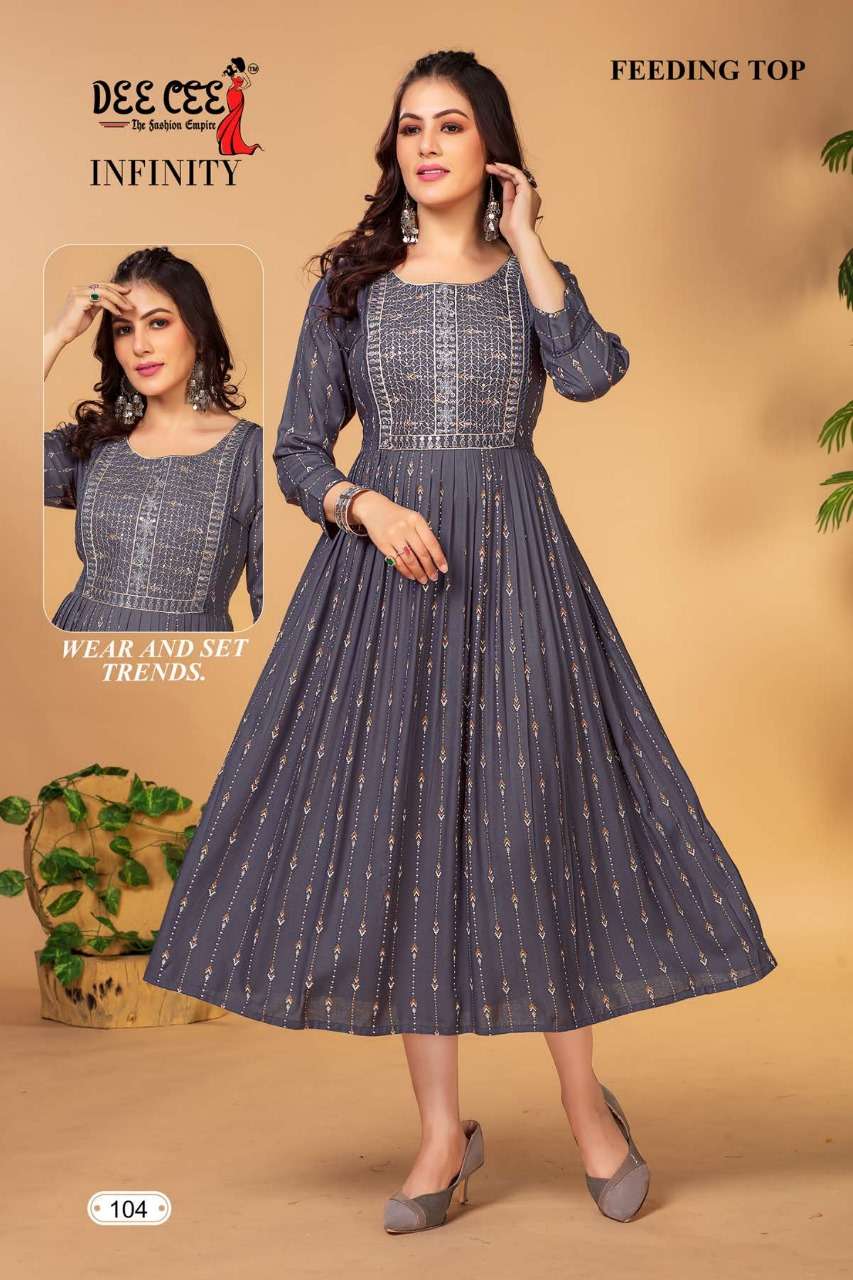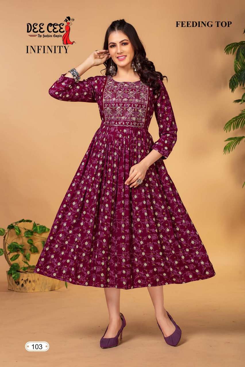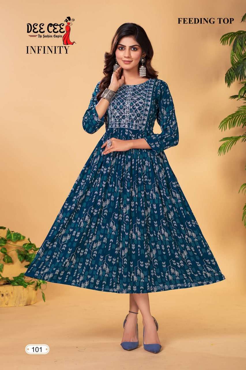 infinity by dee cee new pattern flair long feeding kurti readymade collection
