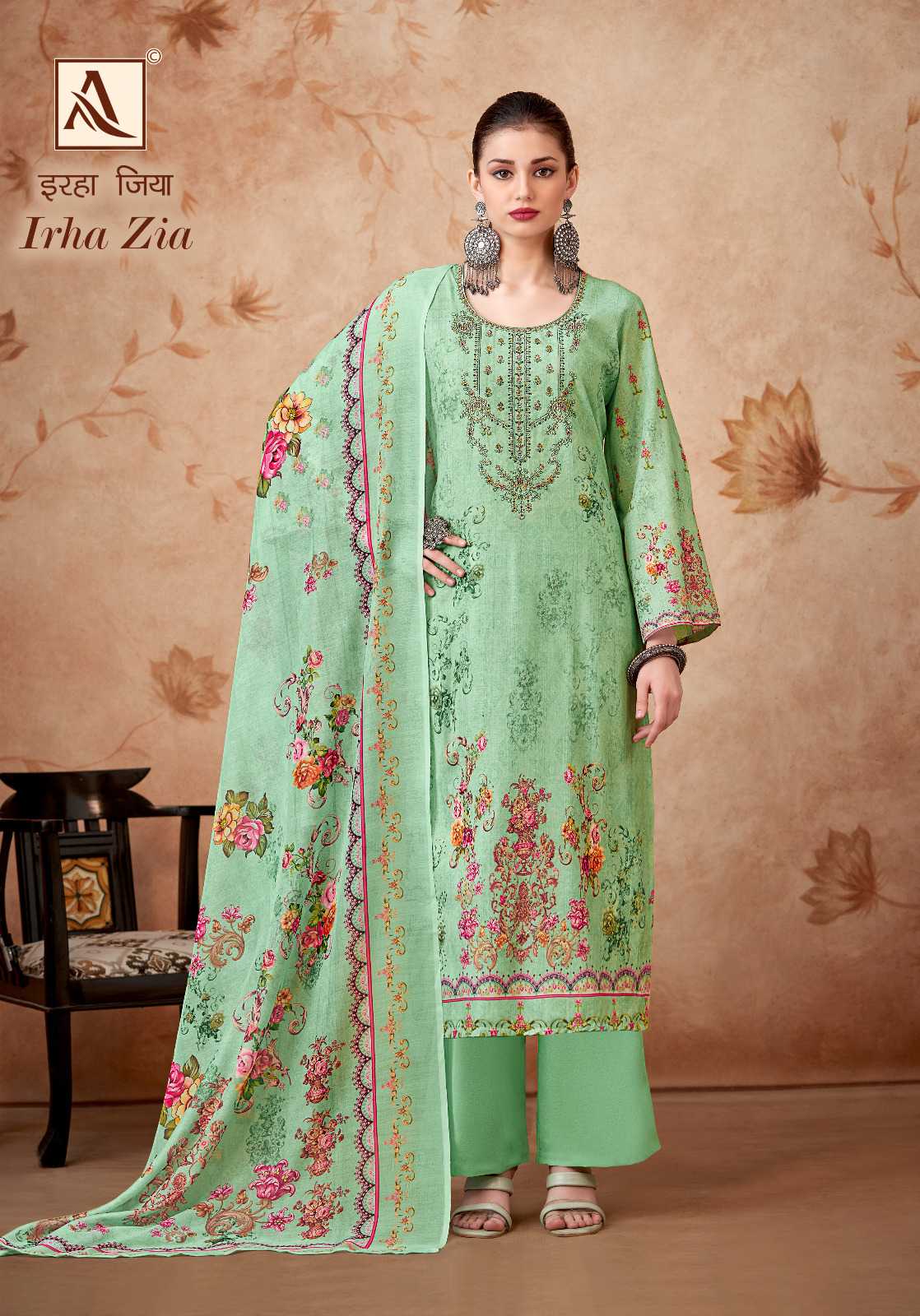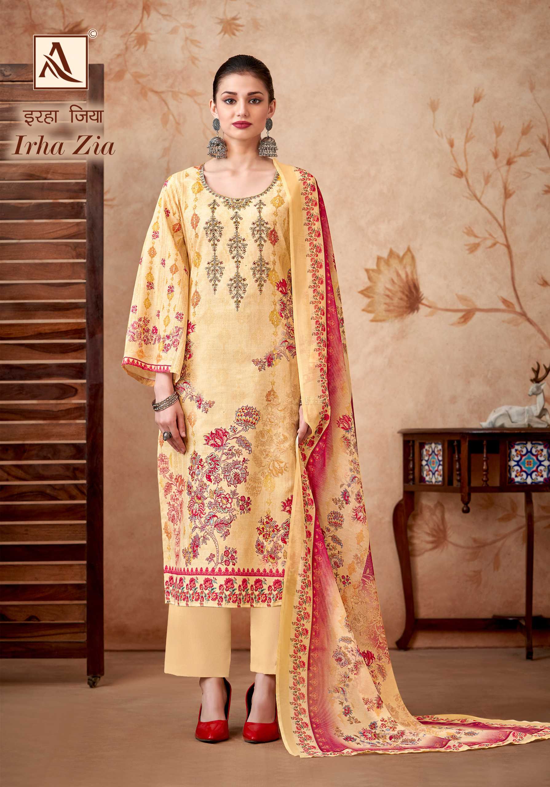 irha zia by alok launch cotton regular wear pakistani embroidery work 3cs dress material