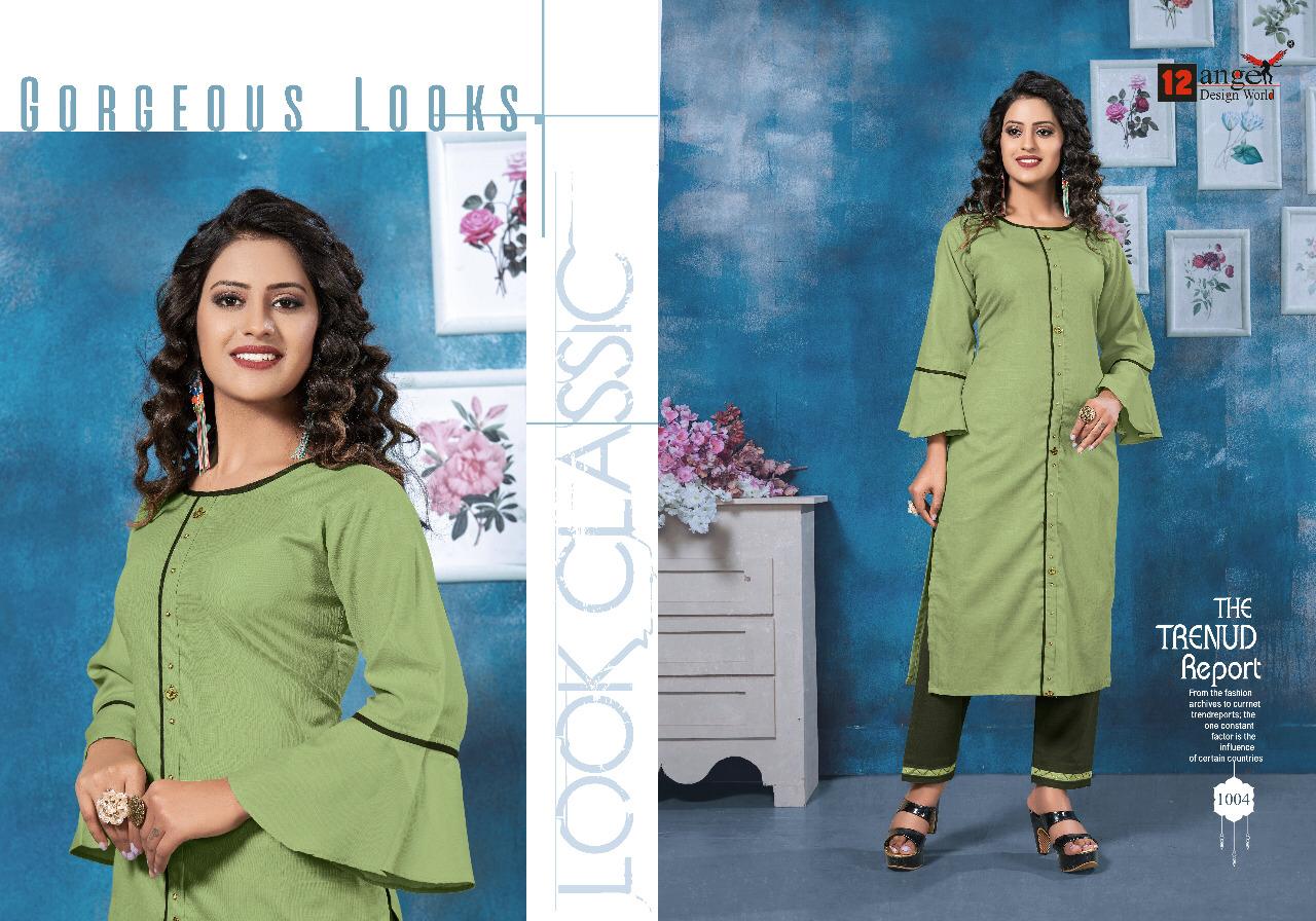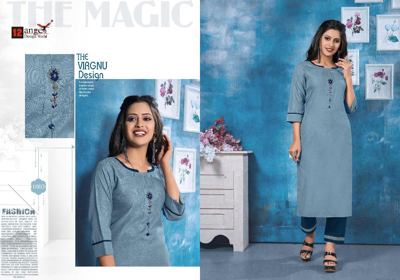 Top With Penchil Pant Collection Hand work top and Pant Brand Name : 12angel Catalog : ISHA Design : 6 Top : Heavy Rubby Cotton Pant: Heavy Rubby Cotton Size : M(38), L(40), XL(42), XXL(44) Rate : 520/ Pic + 5% GST |