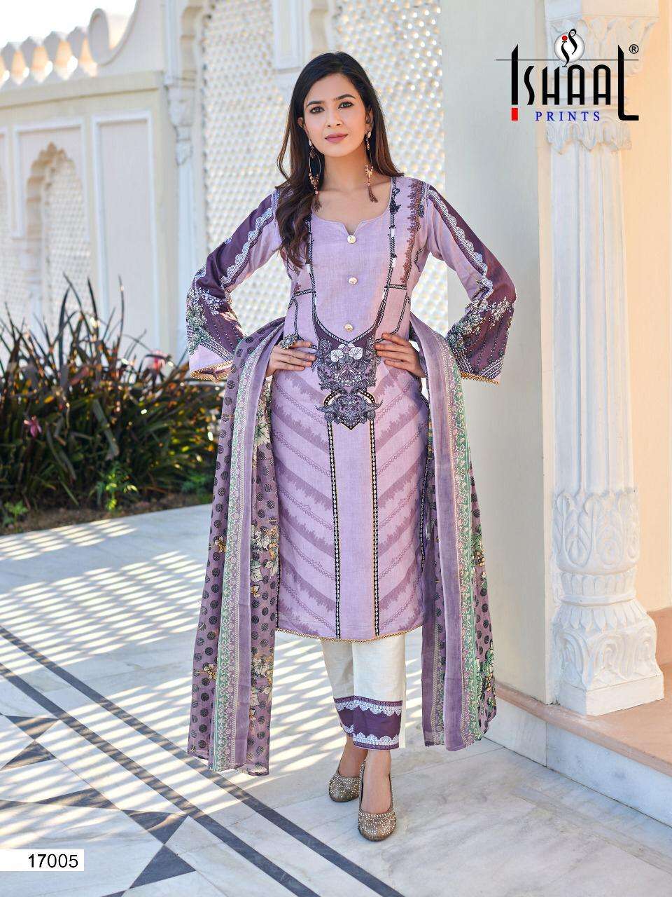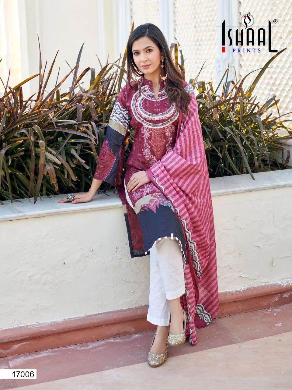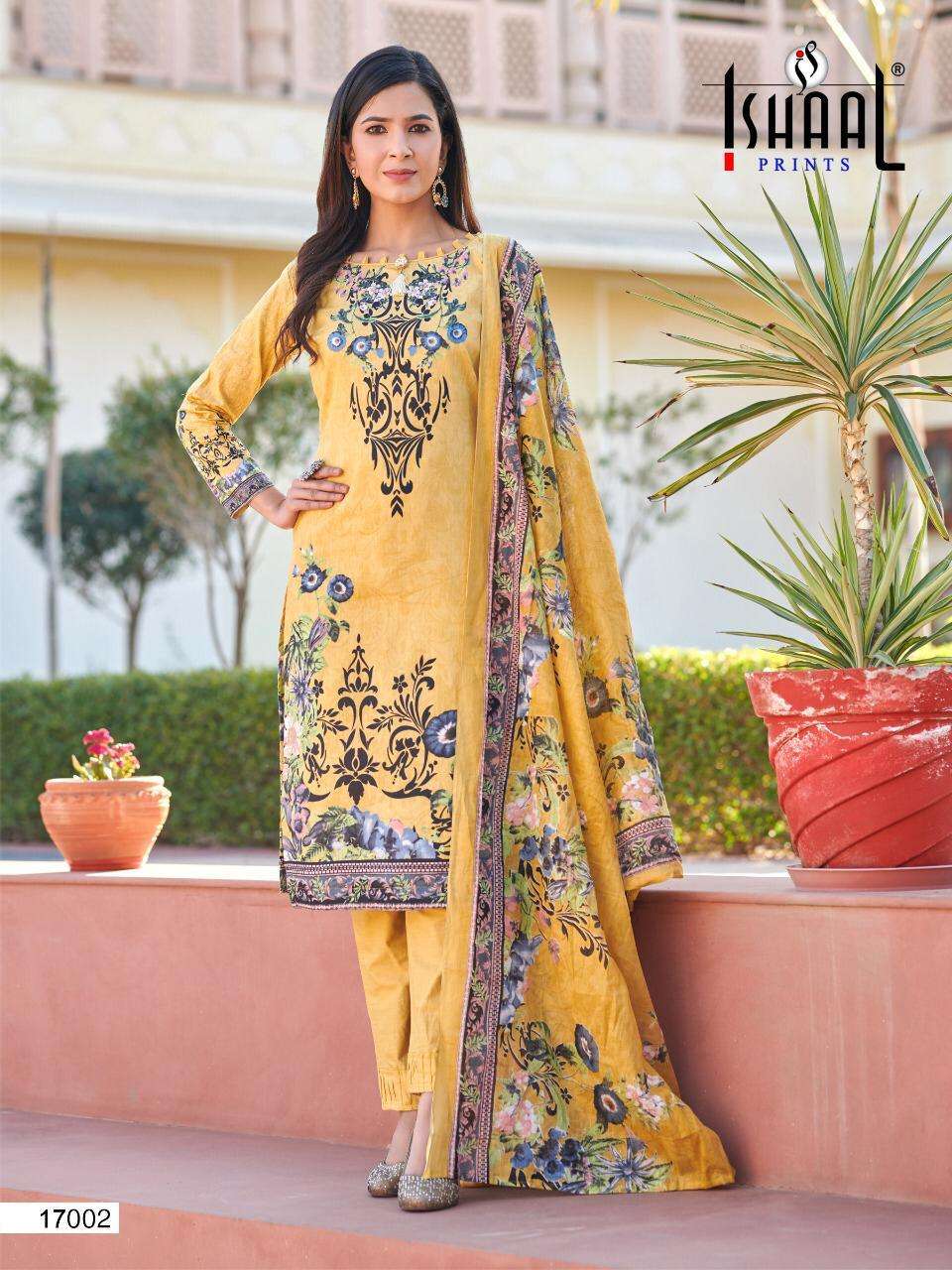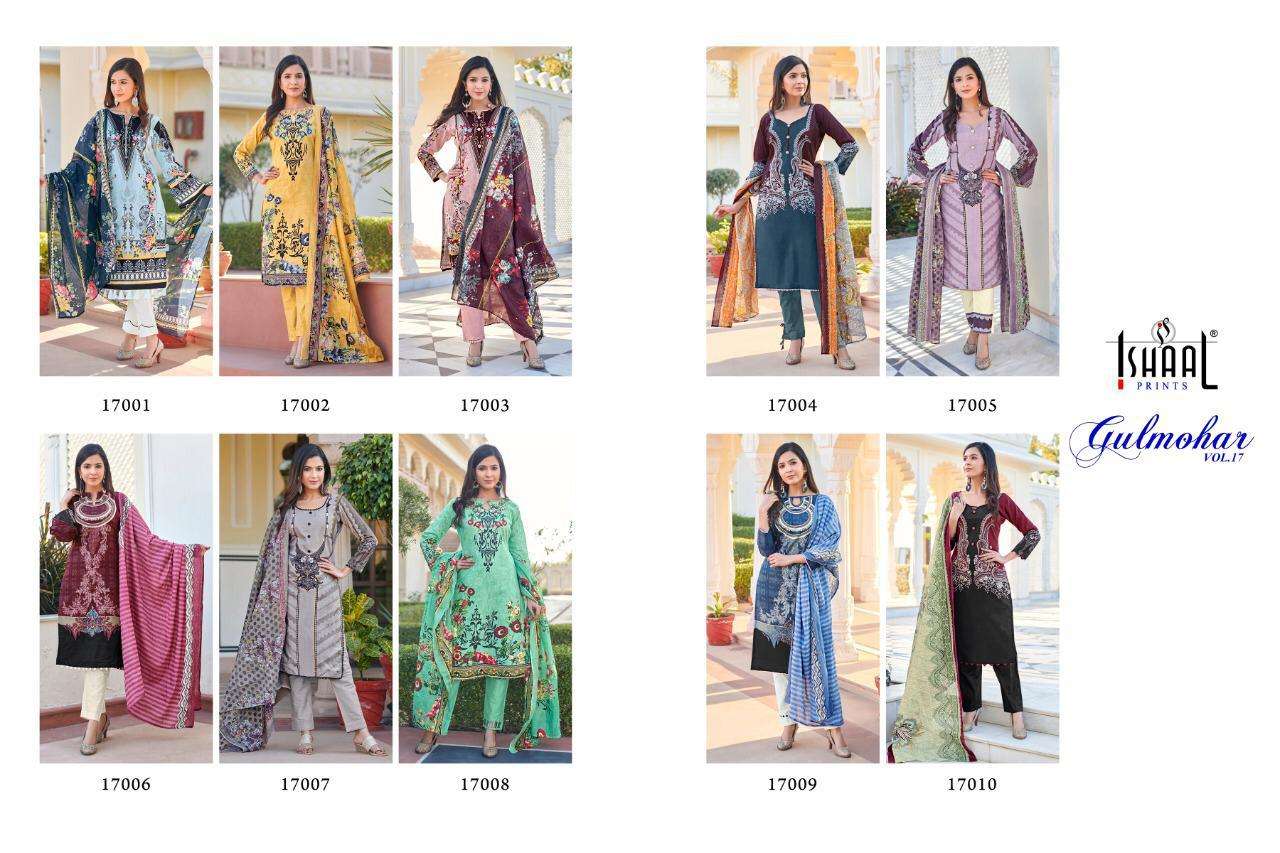 ishaal prints gulmohar vol 17 lawn cotton printed suits wholesaler