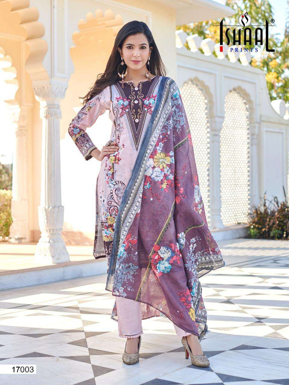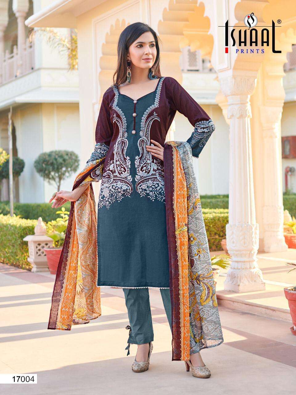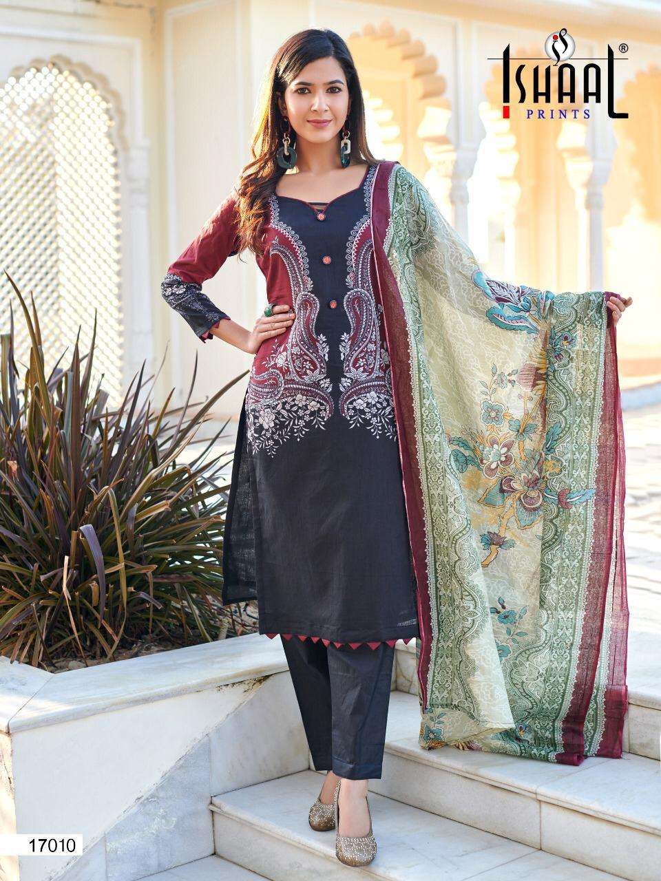 ishaal prints gulmohar vol 17 lawn cotton printed suits wholesaler
