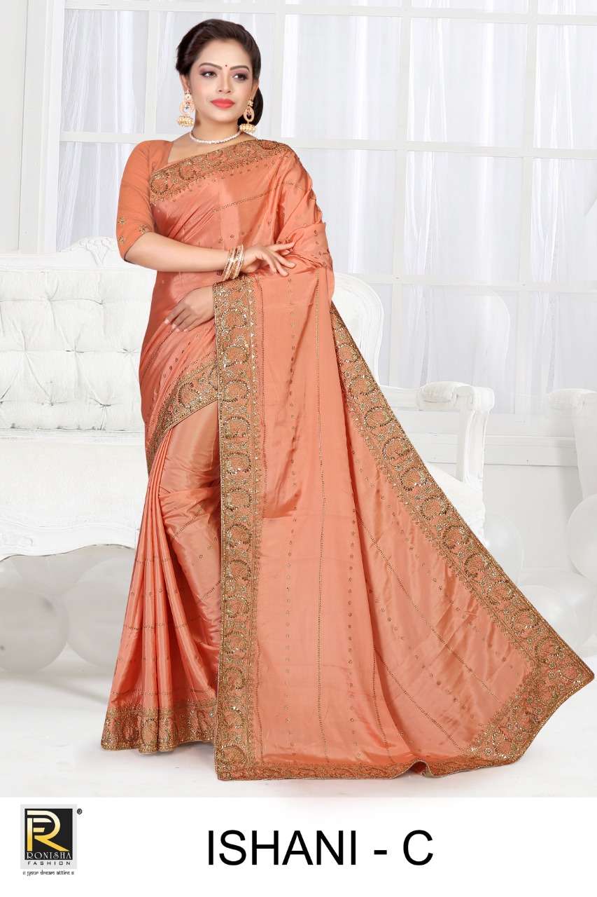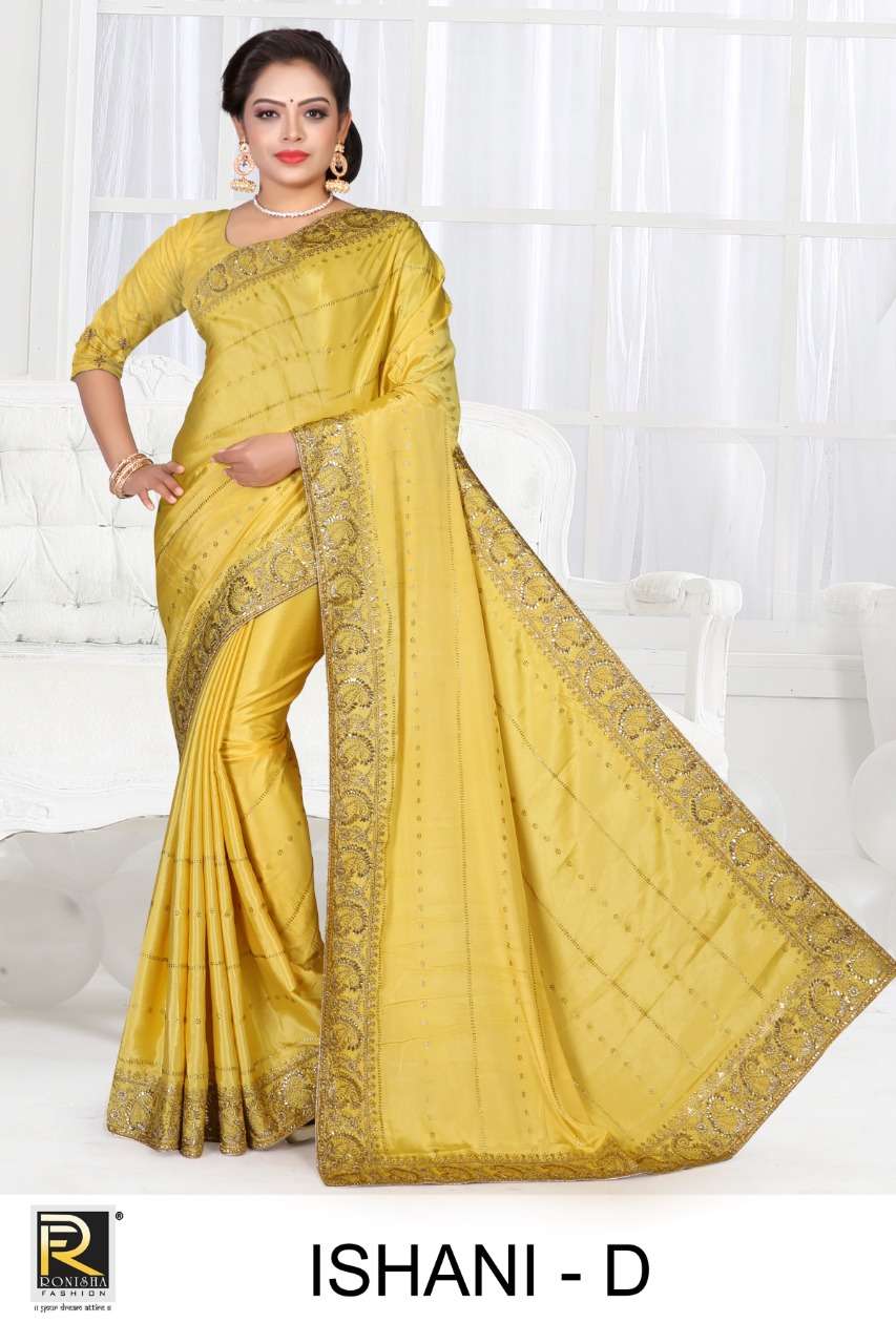 Dear Customer, We are launching our new Saree Catalog Brand – Ranjna Sarees Catalog Name : ISHANI Fabrics – Crape silk Cut - 6.30 Mtr * Set to set * Rate 1465/- Pc – 04 GST 5 Percent Extra. Book your order now |