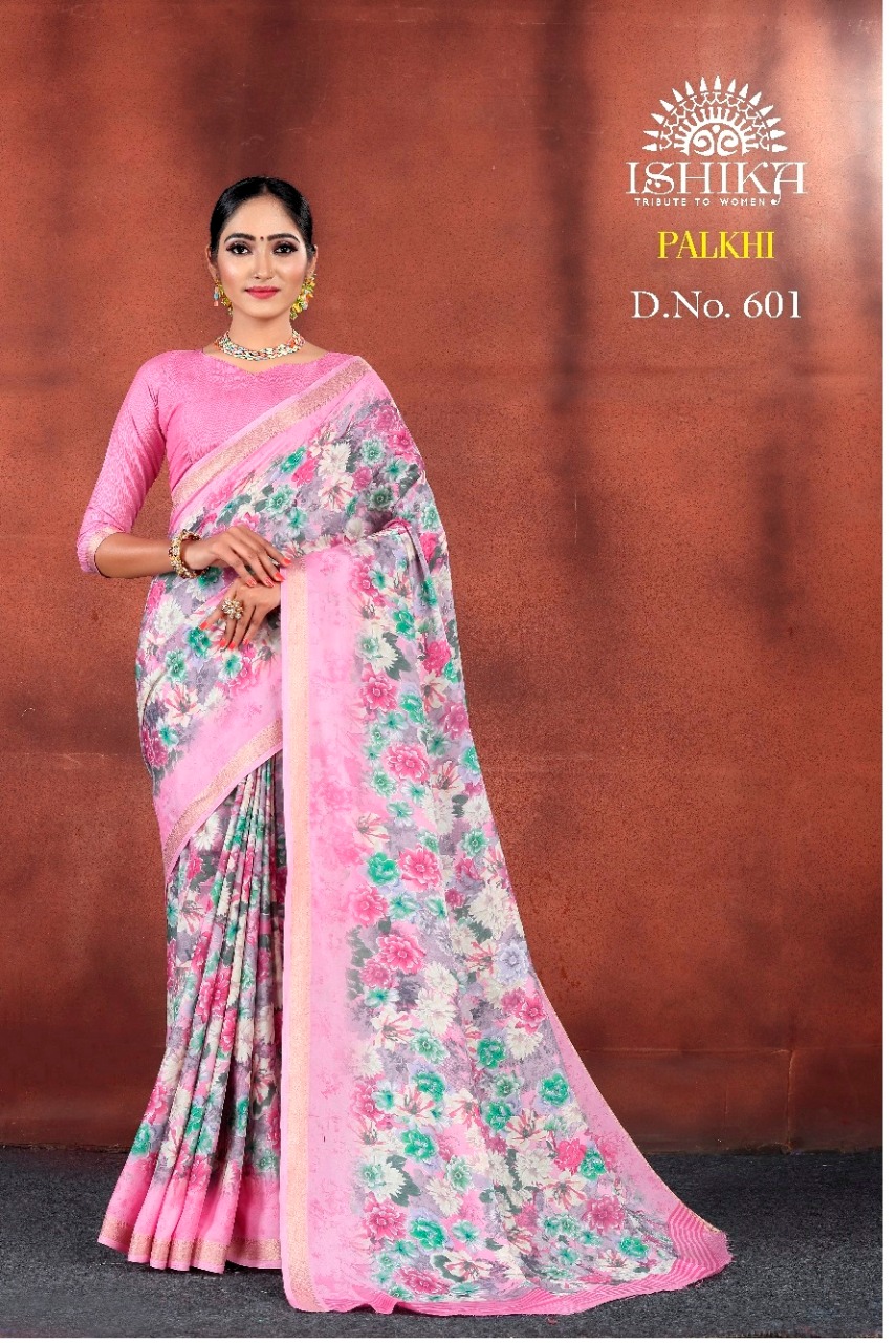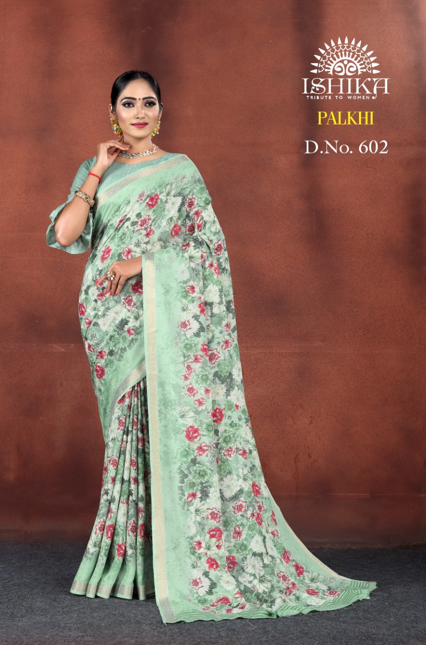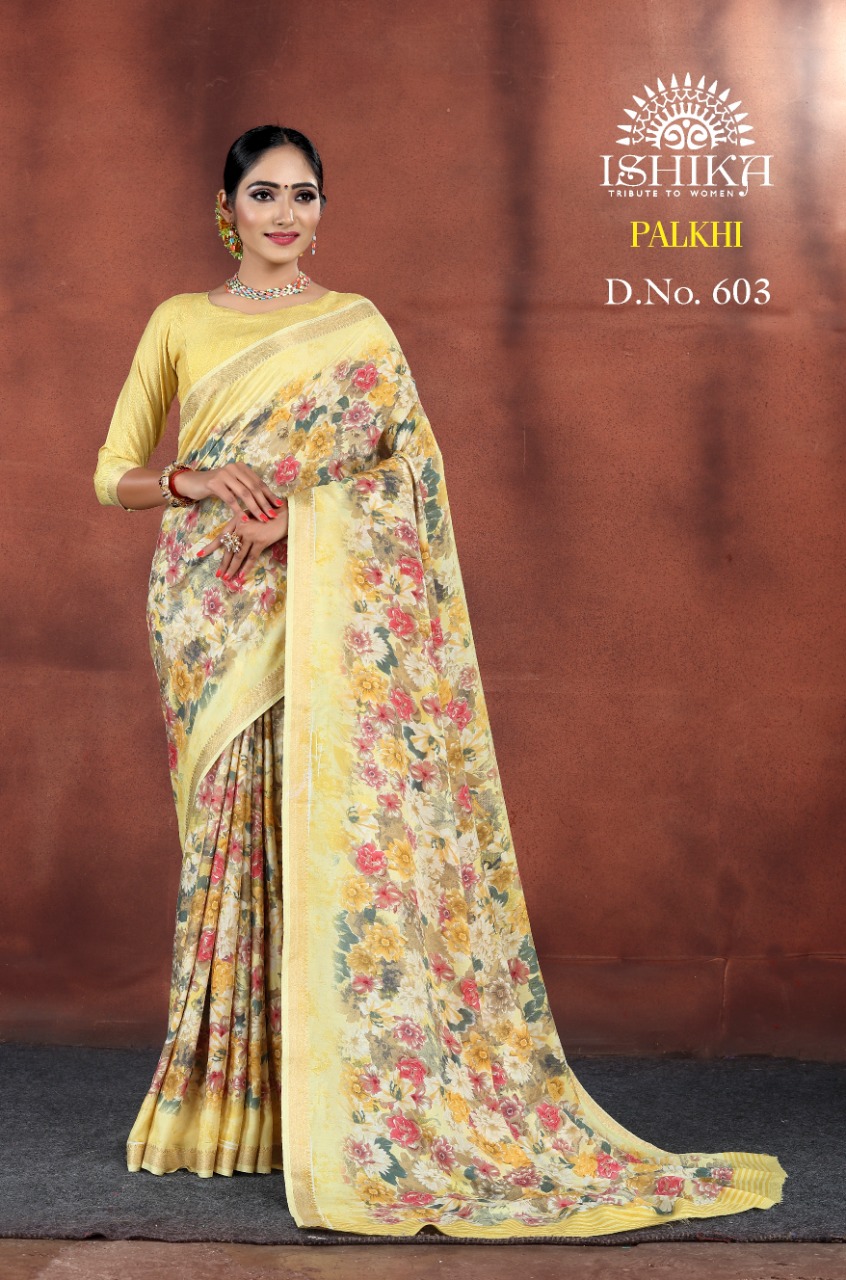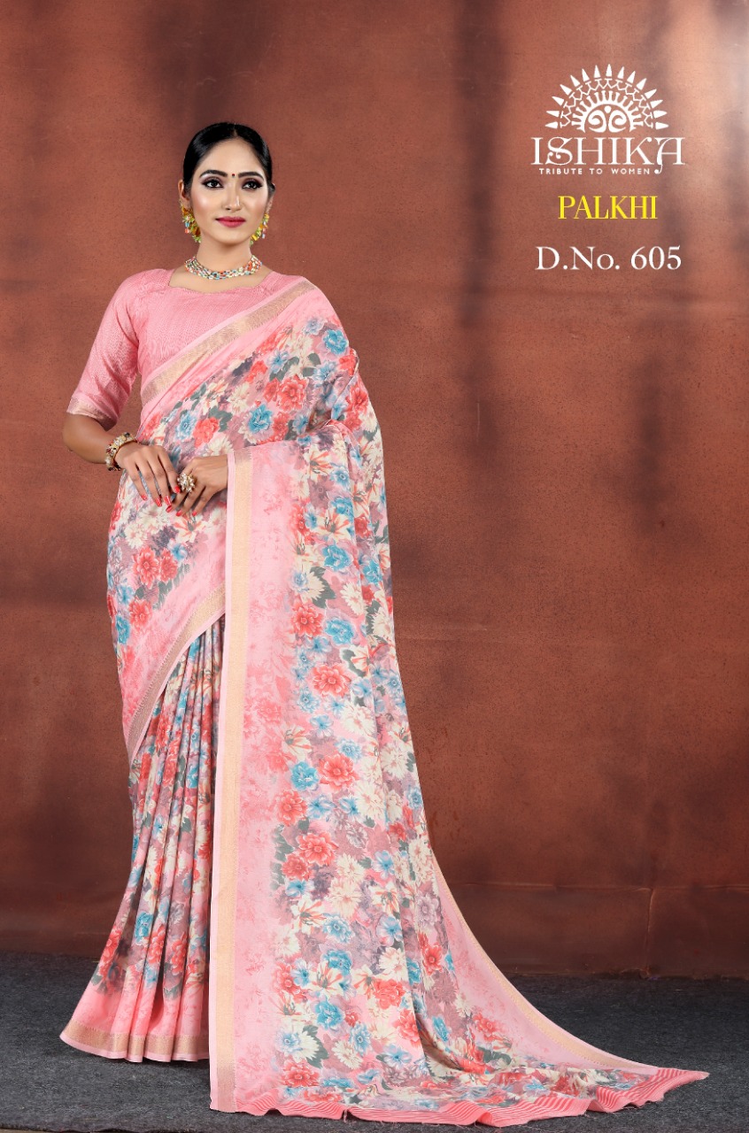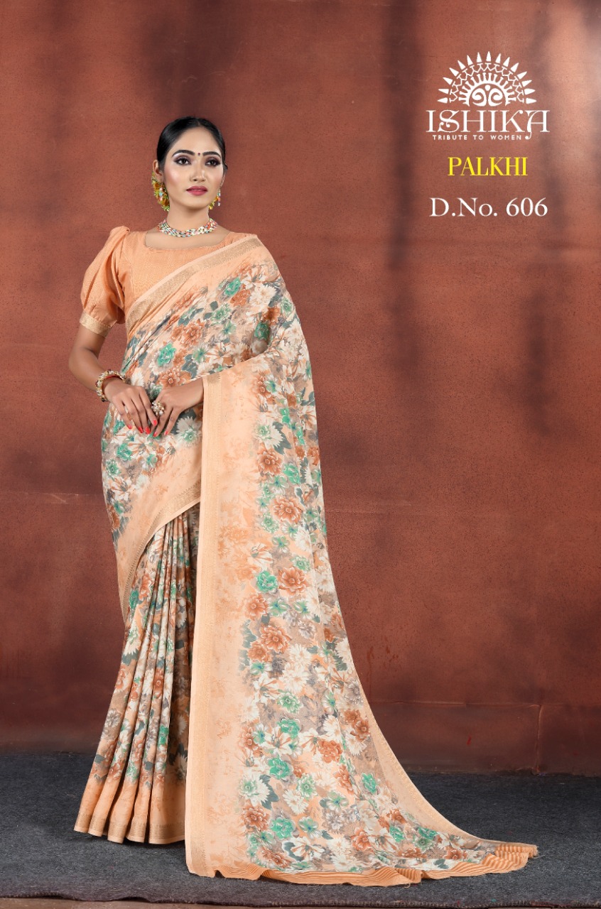 Ishika Palkhi Fancy Printed Saree With Jari Border Concept