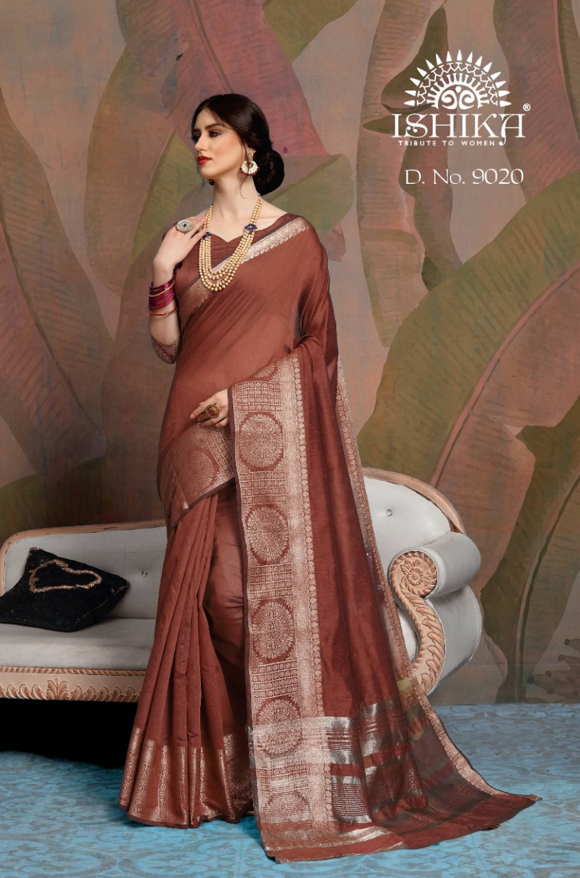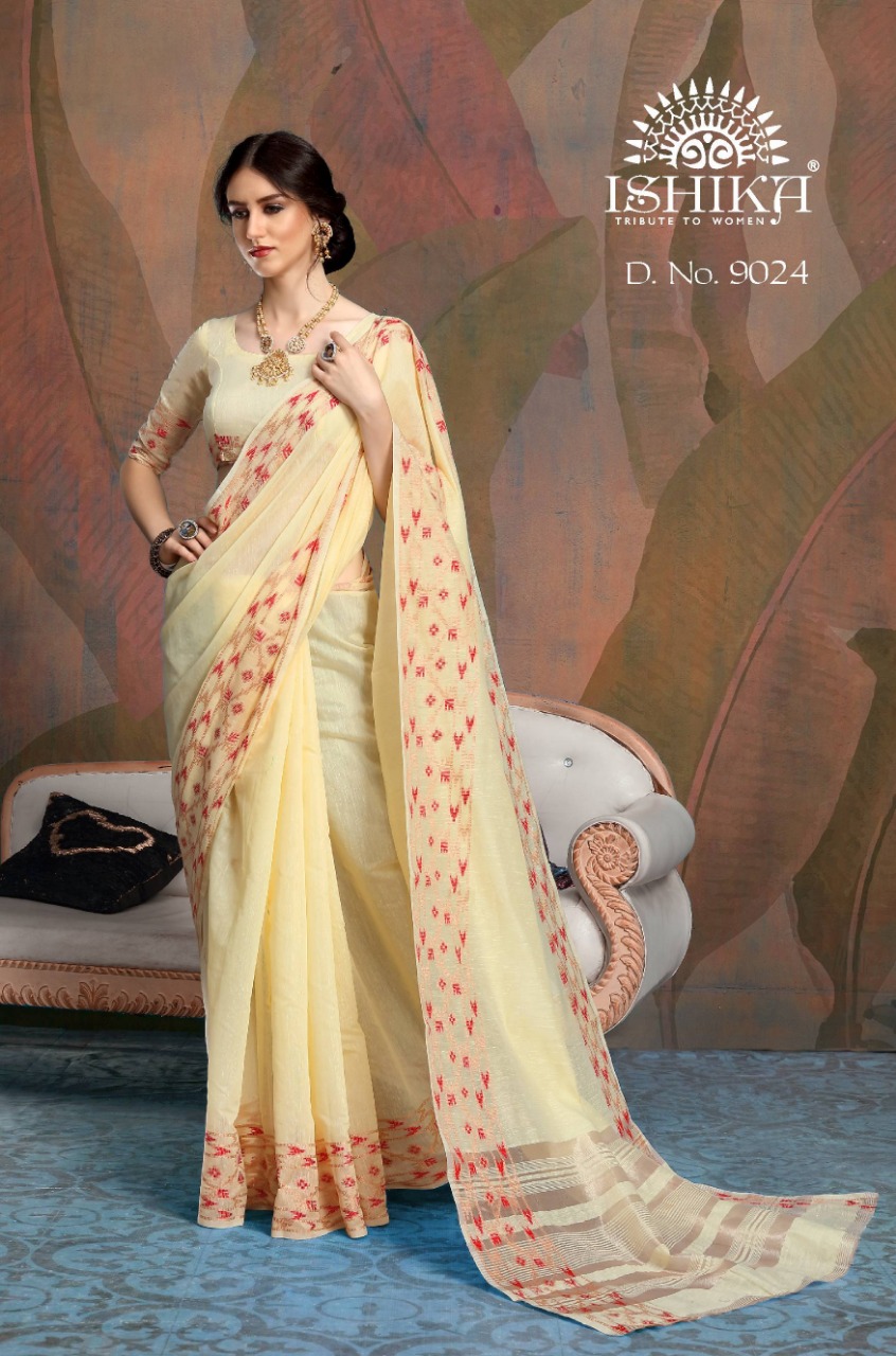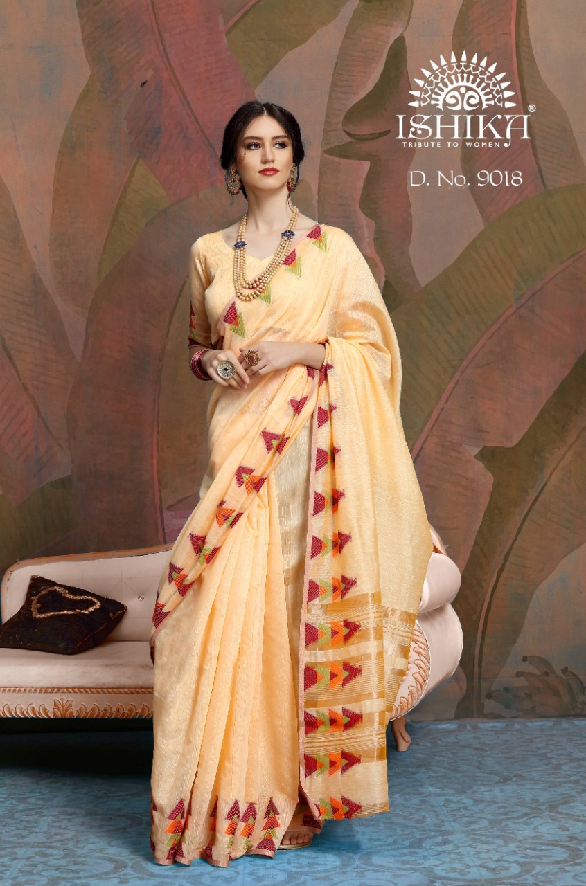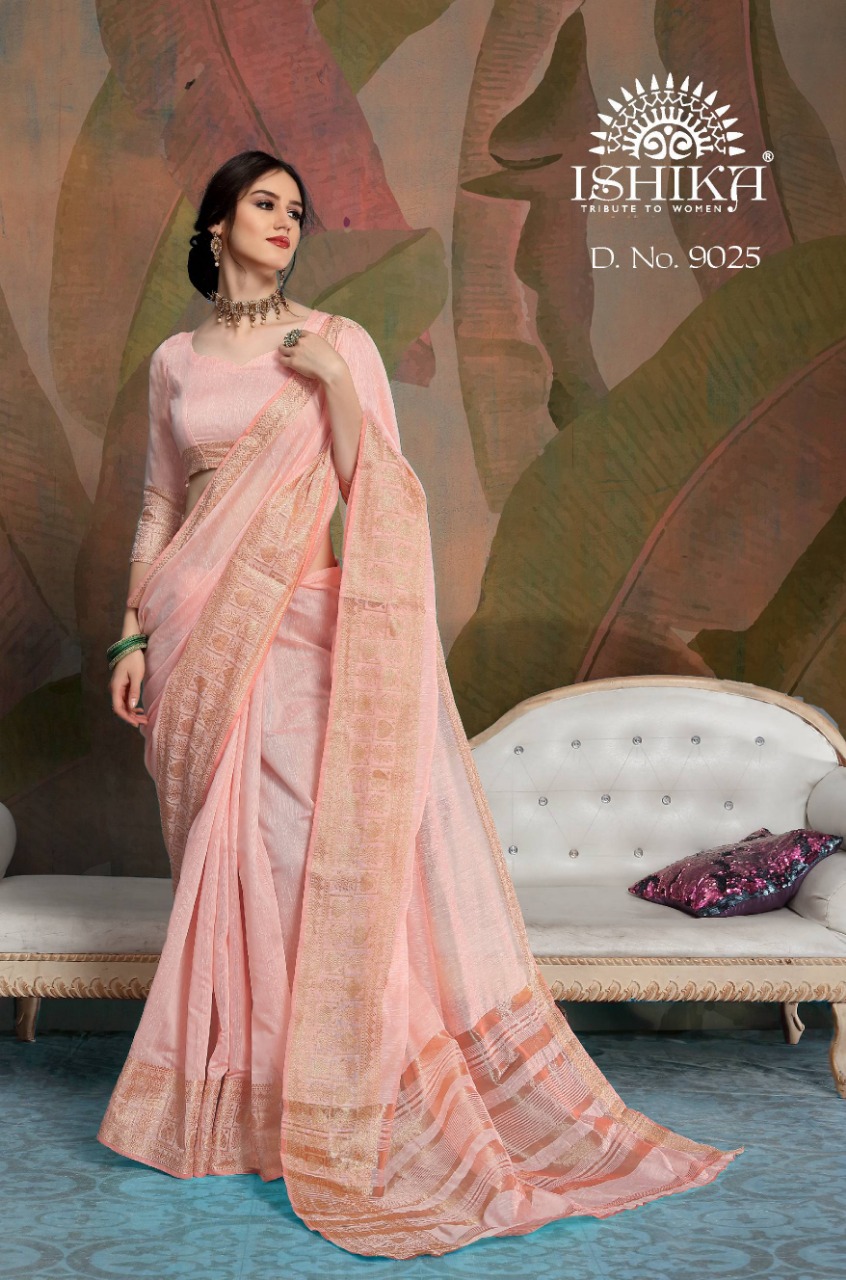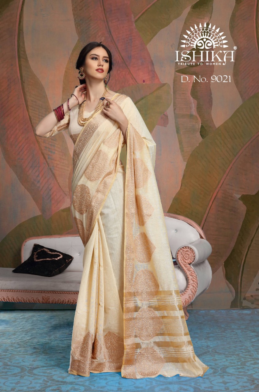 Ishika Saree Kashish Linen Traditional Wear Linen Zari Work Saree Catlog Dealer