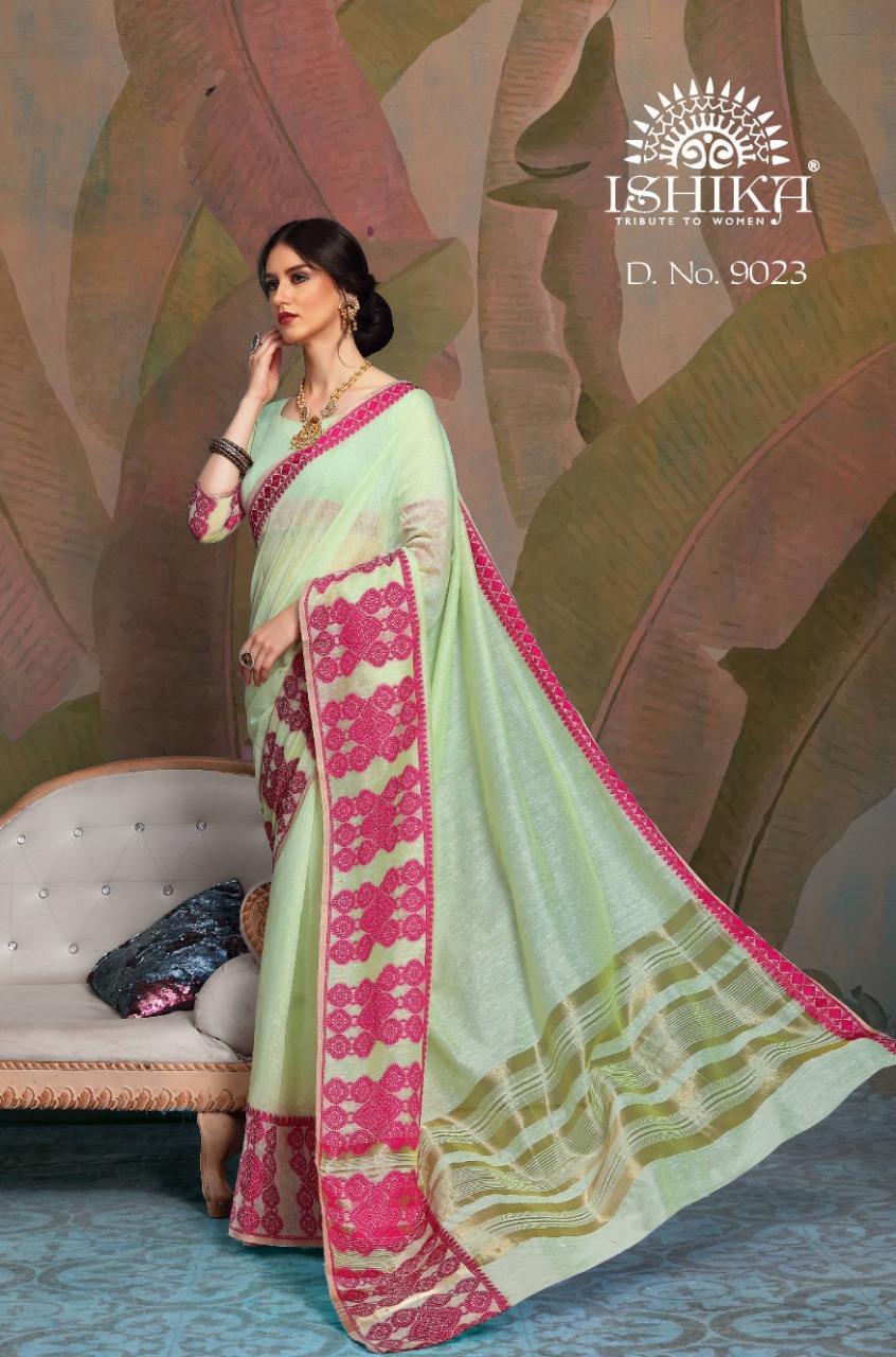 Dear Customer, We are launching our new Saree Catalog Brand – ISHIKA SAREES . Catalog Name : KASHISH LINEN Fabrics – Linen With Zari Work * Set to set * Rate 615/- only Pc – 10 GST 5 Percent Extra. Delivery 3-4 days Book your order now . |