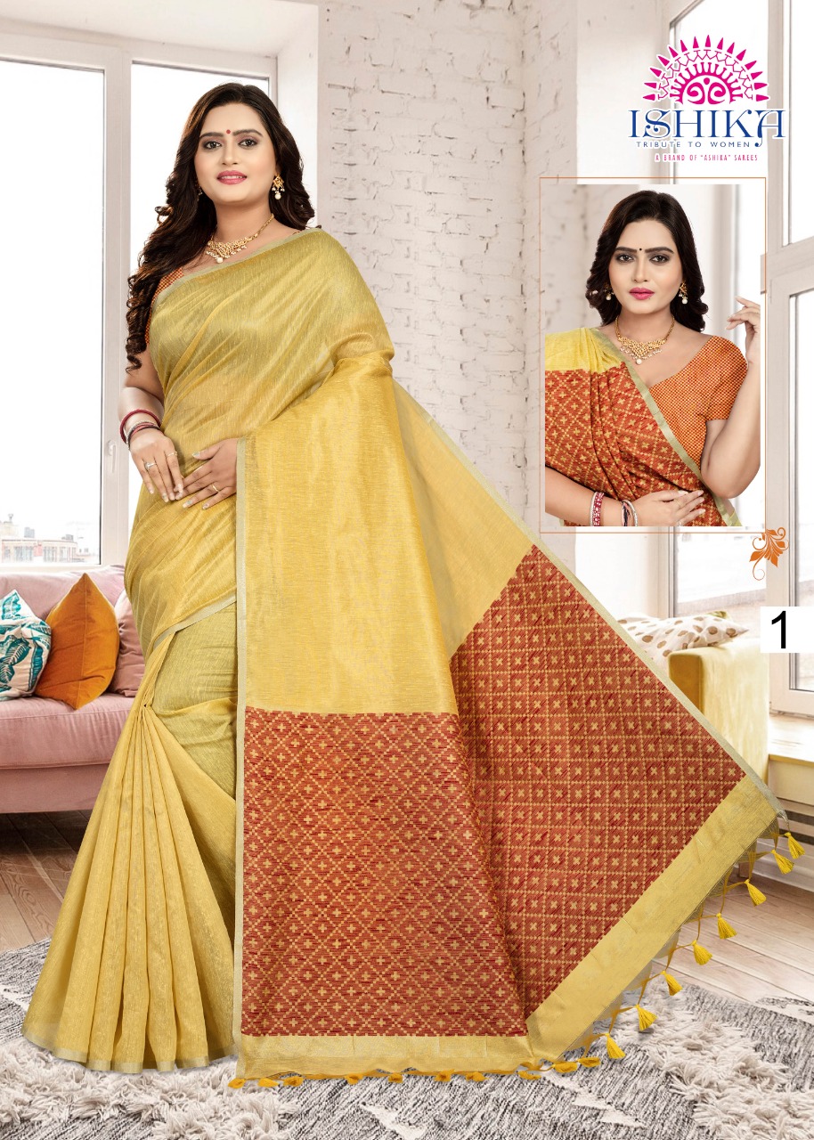 We are launching our new Saree Catalog Brand – ISHIKA SAREES . Catalog Name : SAYRA Fabrics – COTTON LINEN WITH JEQUARD PALLU * Set to set * Rate 775/- only Pc – 08 GST 5 Percent Extra. Delivery 3-4 days |