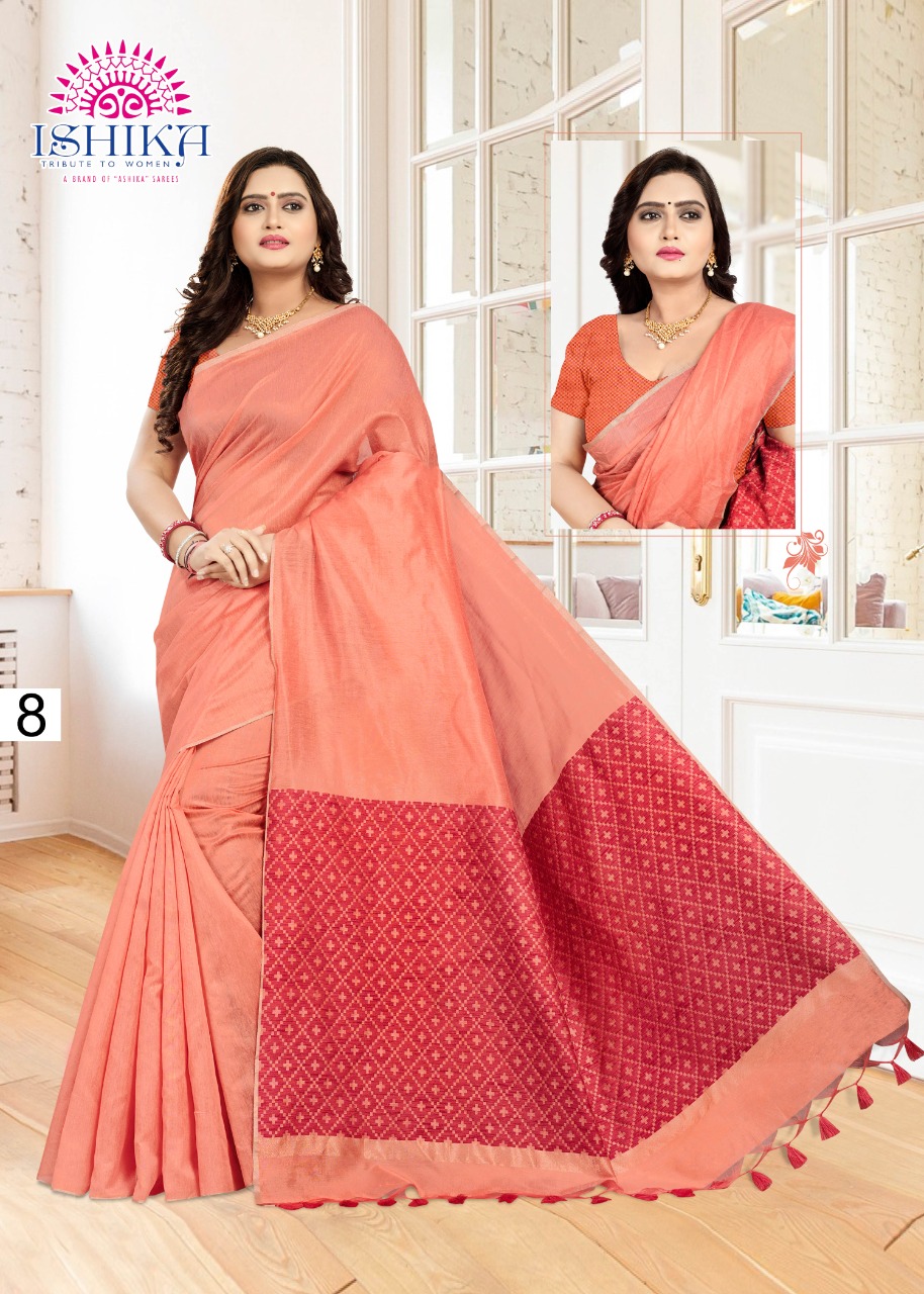 Ishika Sarees Presents Latest Collection Launched on 08-01-2020. Presenting Beautiful collection of 8 PCS with Unstitched .