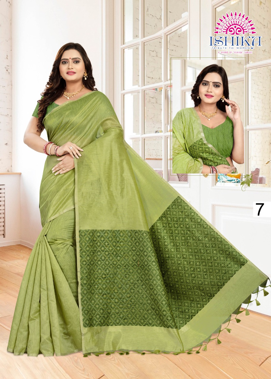 Ishika Sayra Cotton Linen With Jacquard Pallu Saree Wholesaler
