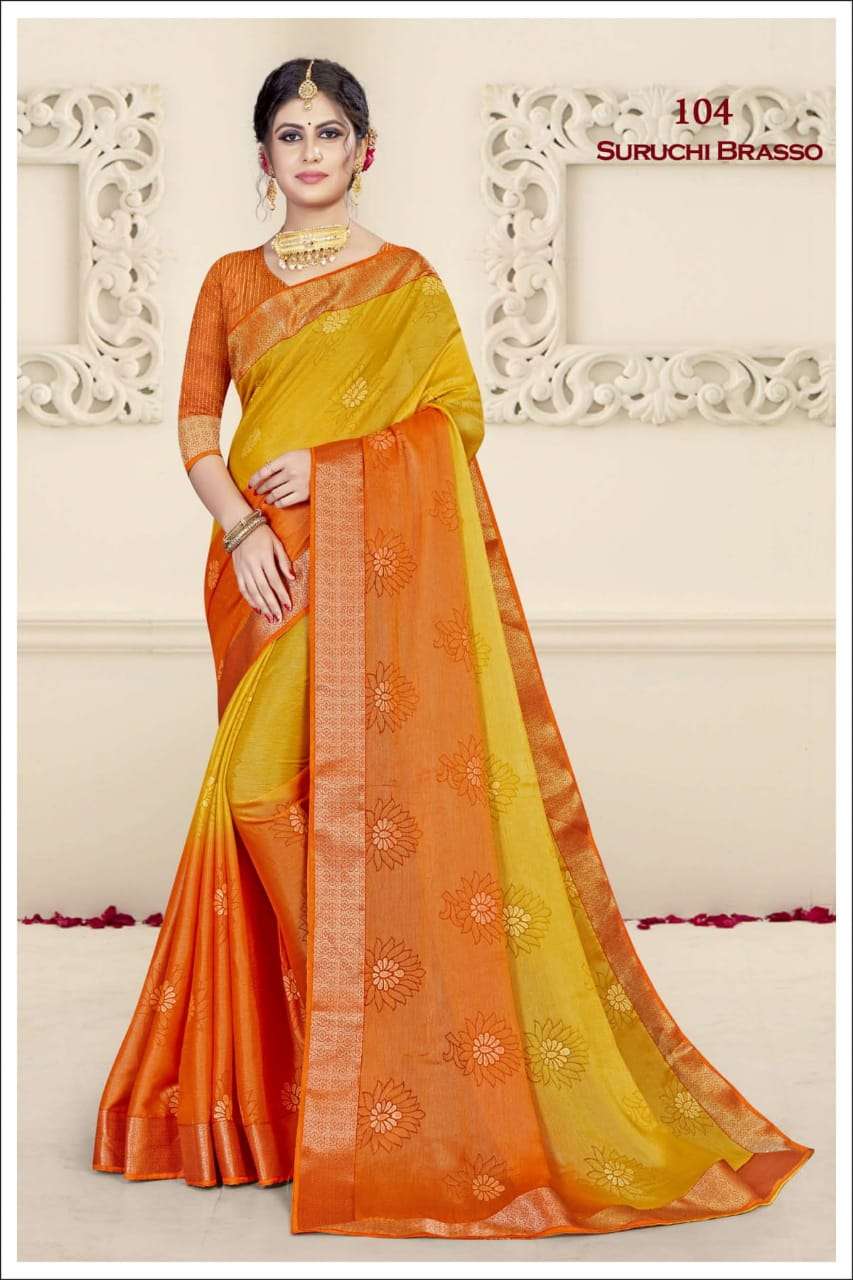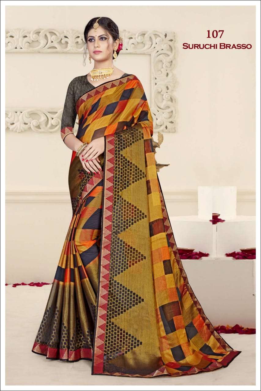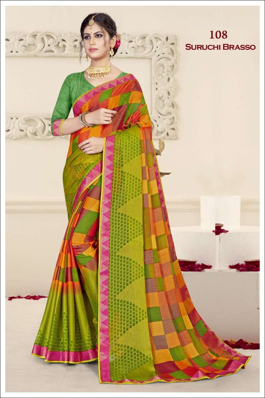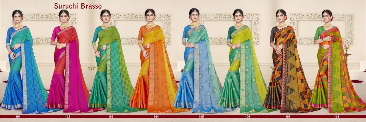 ishika suruchi brasso printed chiffon brasso designer saree wholesaler