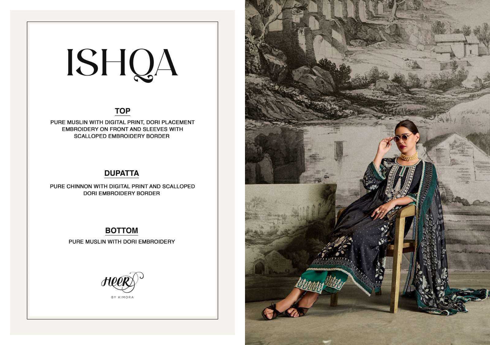 ishqa by kimora 9451- 9456 muslin print stylish look pakistani 3pcs dress