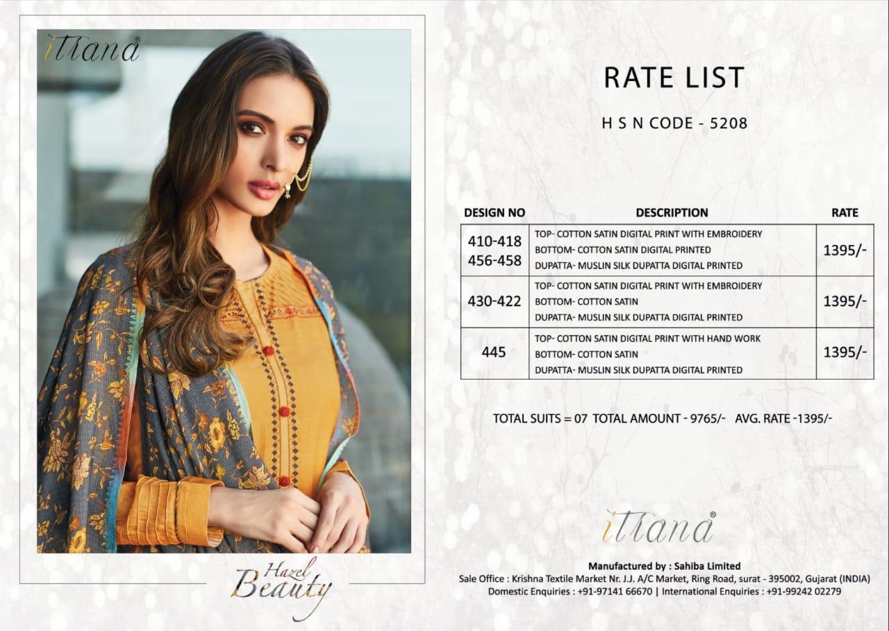 Itrana Hazel Beuty Cotton Satin Digital Print With Embroidery Work Salwar Suits Looking Classy