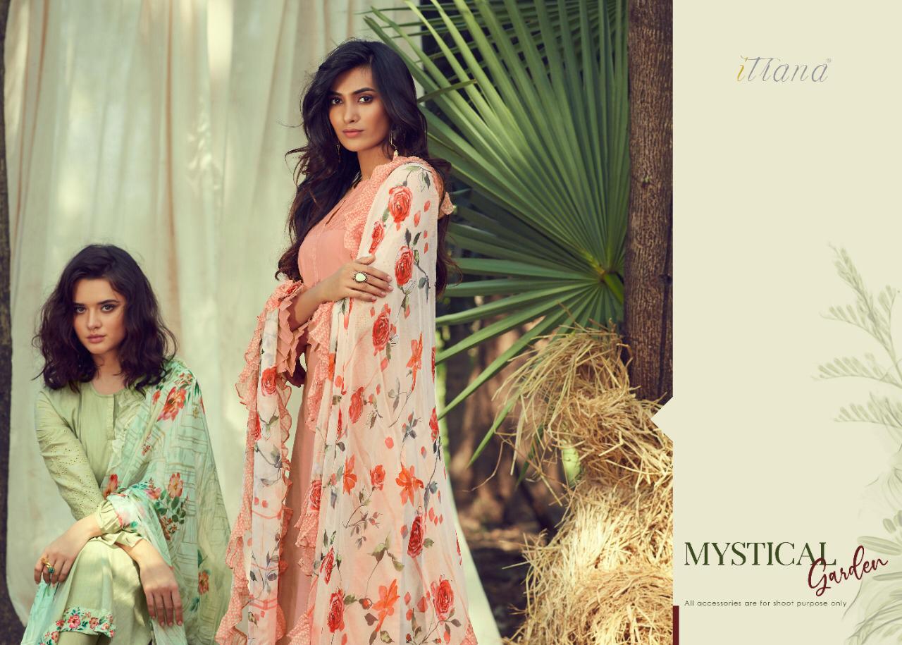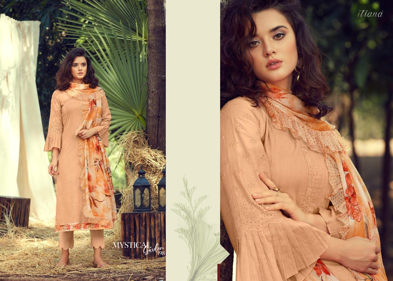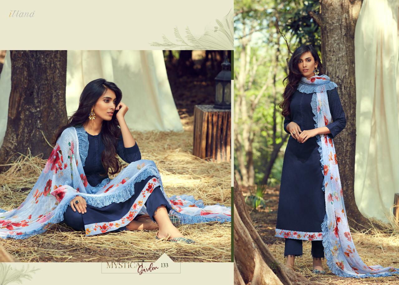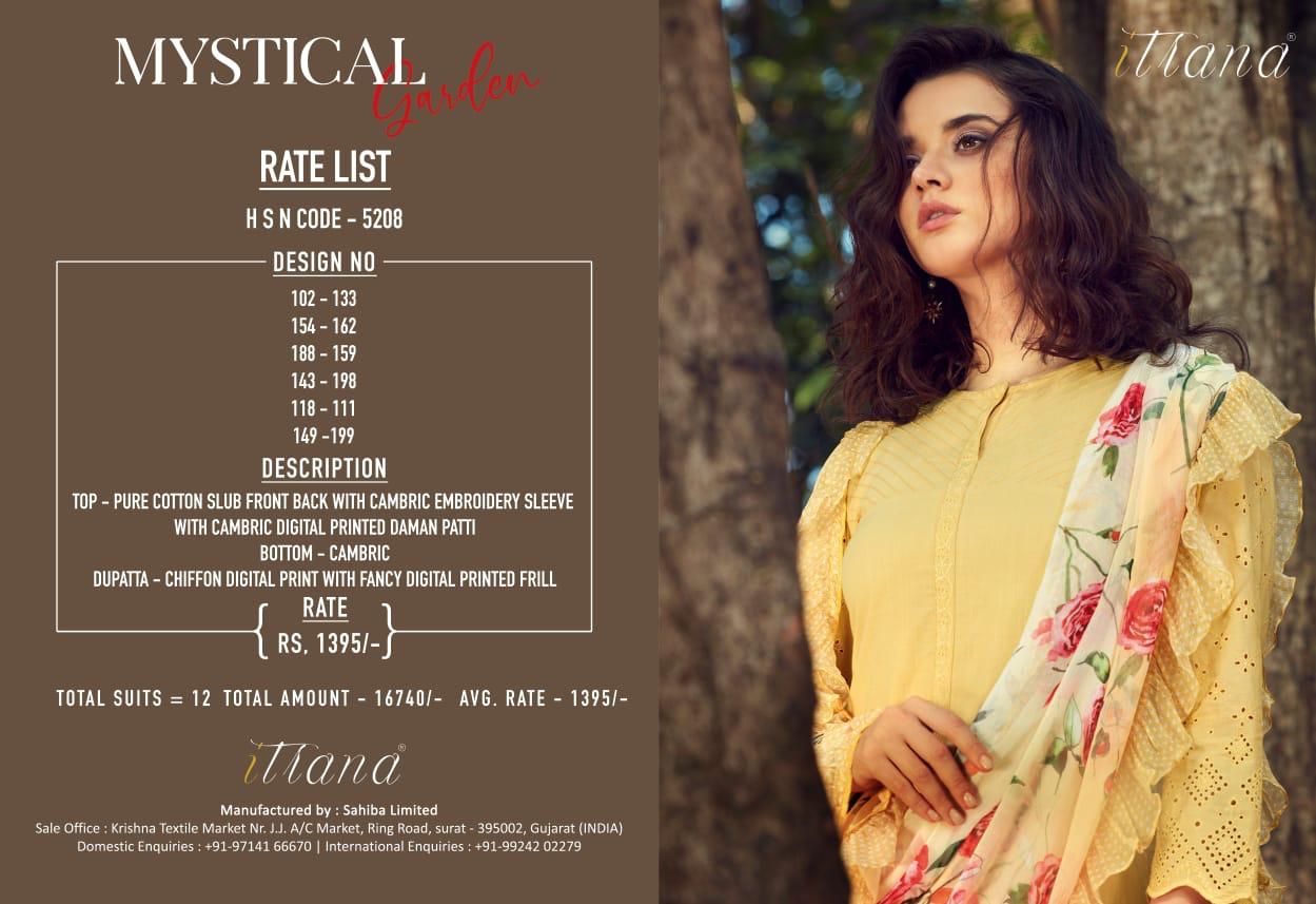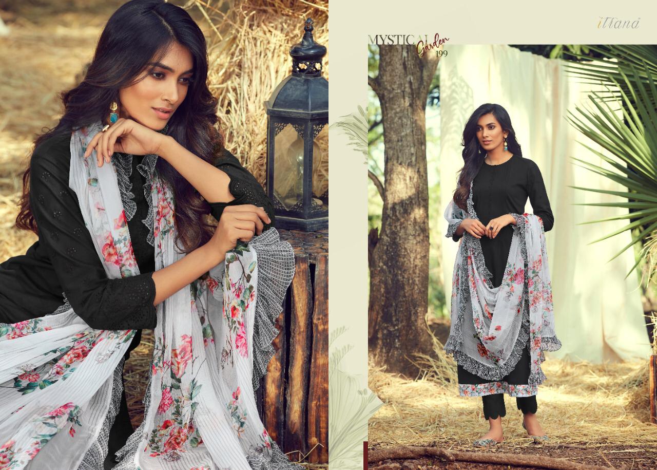 ITRANA Presents - MYSTICAL GARDEN _TOP- Pure cotton slub front back with cambric embroidery sleeve and cambric digital print daman Patti _ BOTTOM- Cambric DUPATTA- Chiffon digital print with fancy digital printed frill RATE- 1395₹ DELIVERY TOMOROW SET TO SET GST 5% |