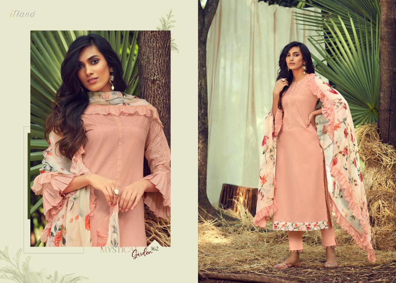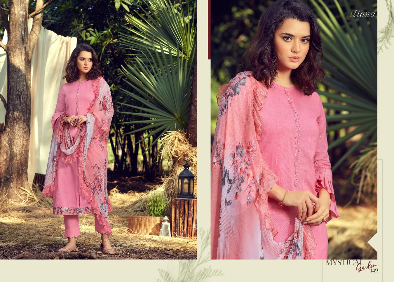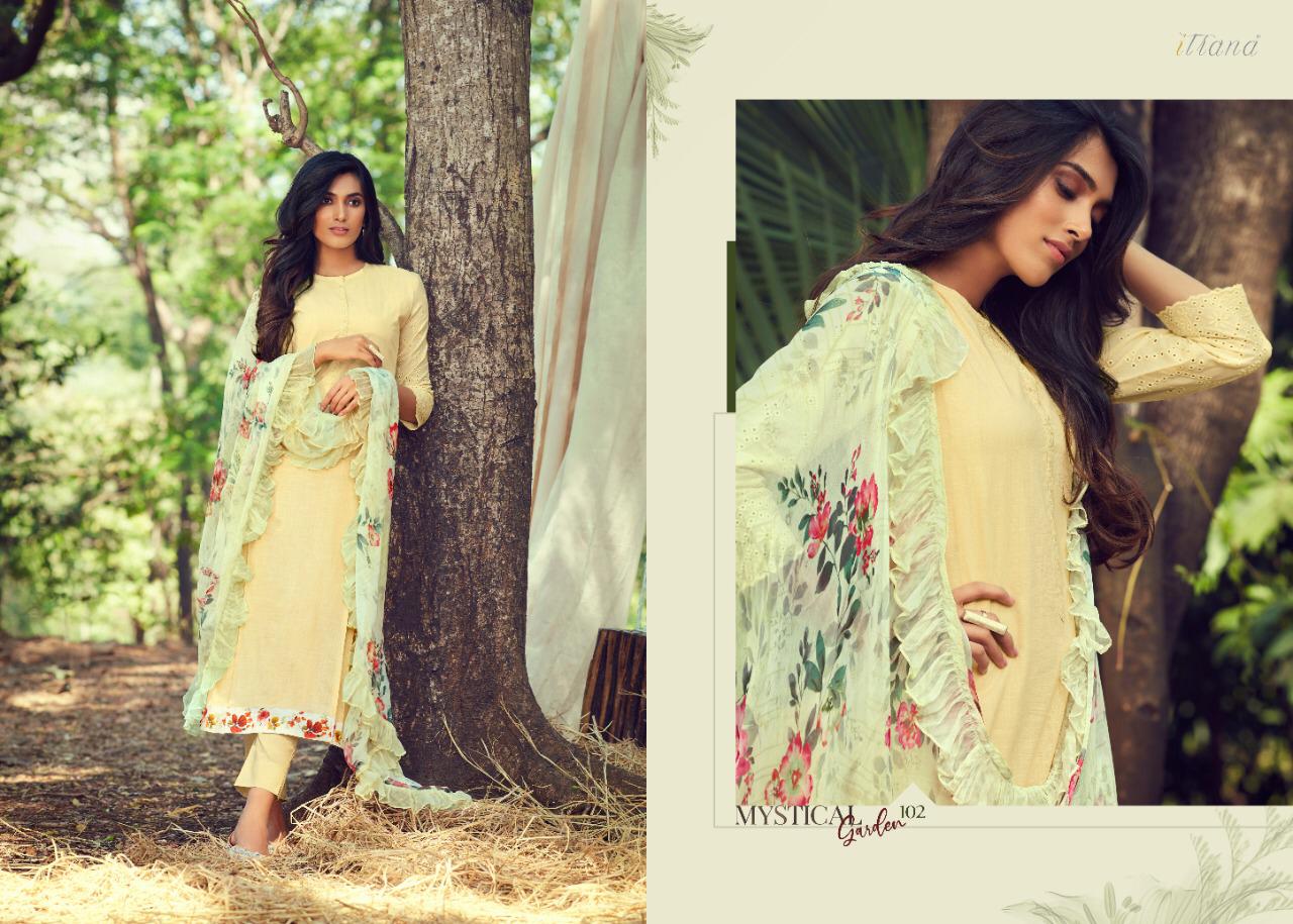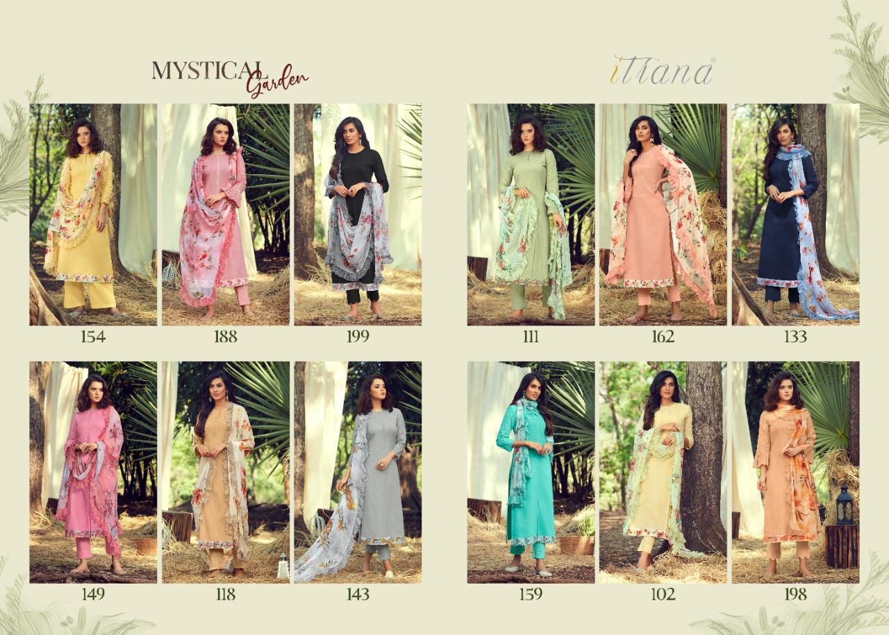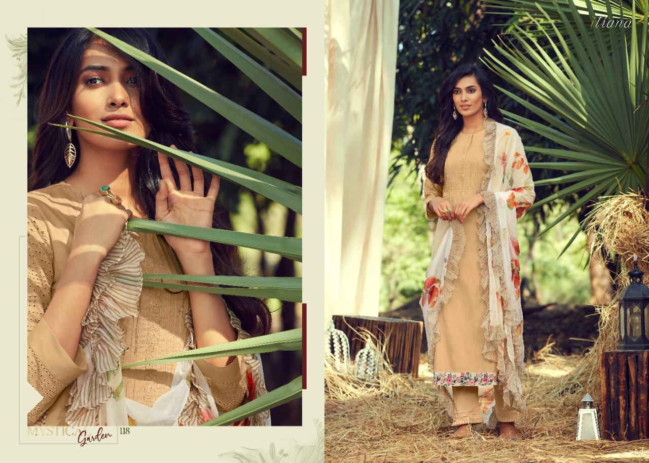 ITRANA Presents - MYSTICAL GARDEN _TOP- Pure cotton slub front back with cambric embroidery sleeve and cambric digital print daman Patti _ BOTTOM- Cambric DUPATTA- Chiffon digital print with fancy digital printed frill RATE- 1395₹ DELIVERY TOMOROW SET TO SET GST 5% |