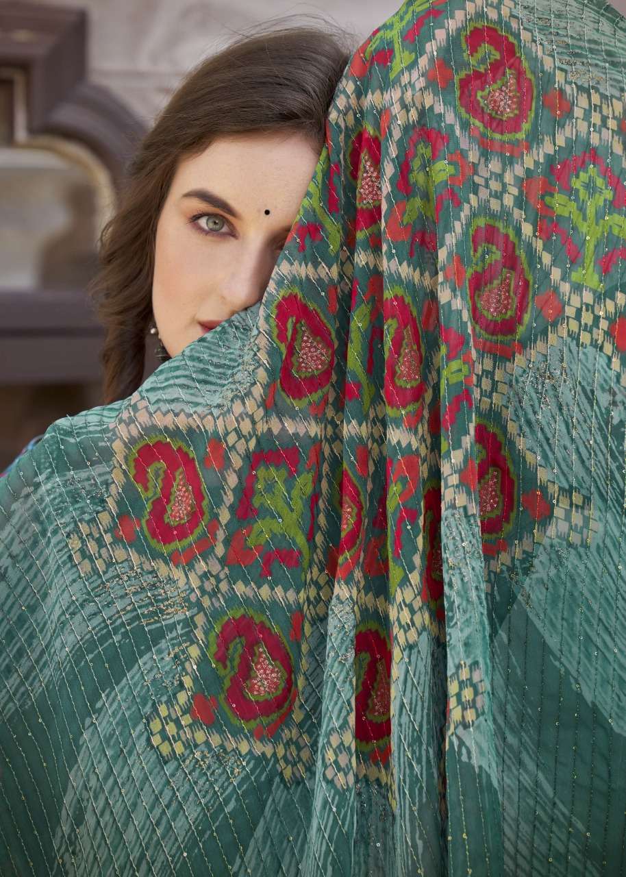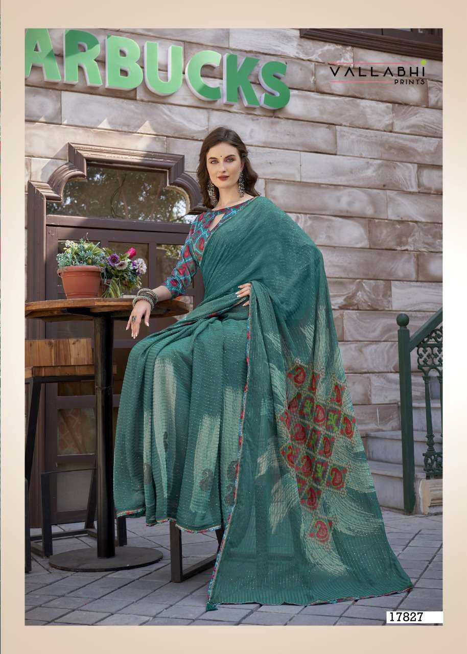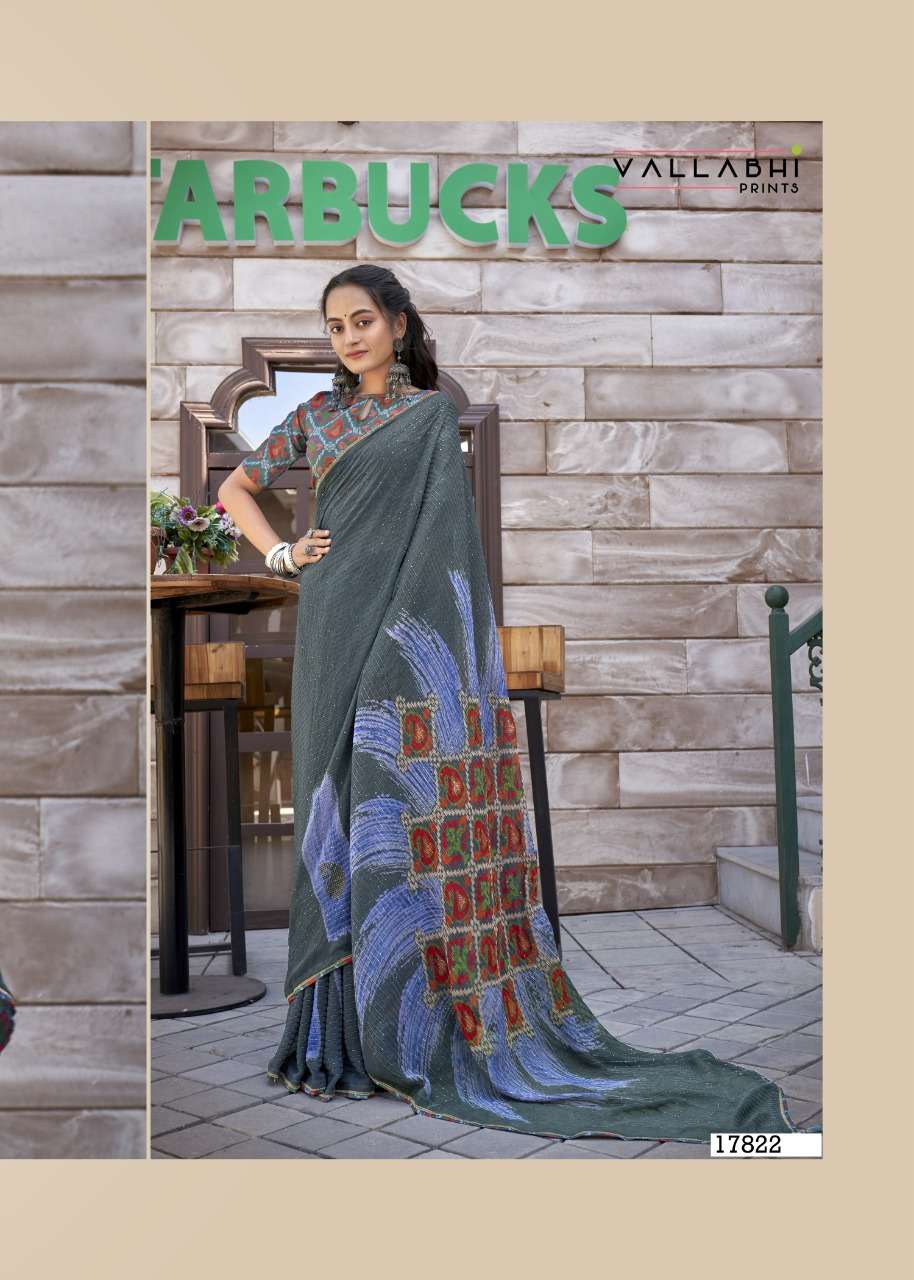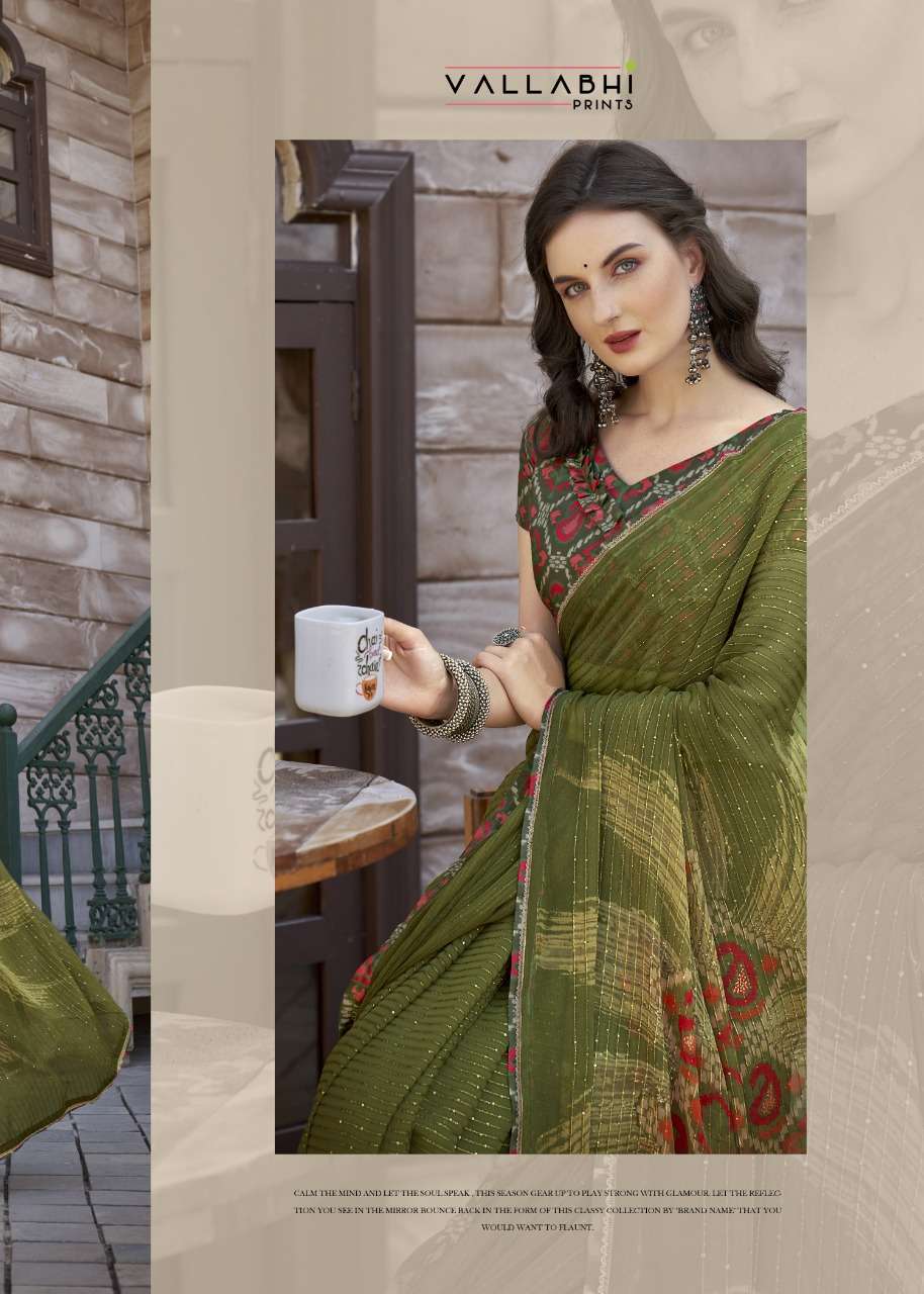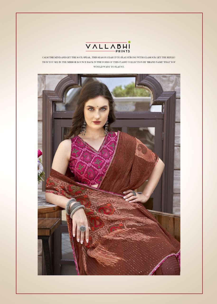 izzara by vallabhi krochet georgette printed fancy sarees