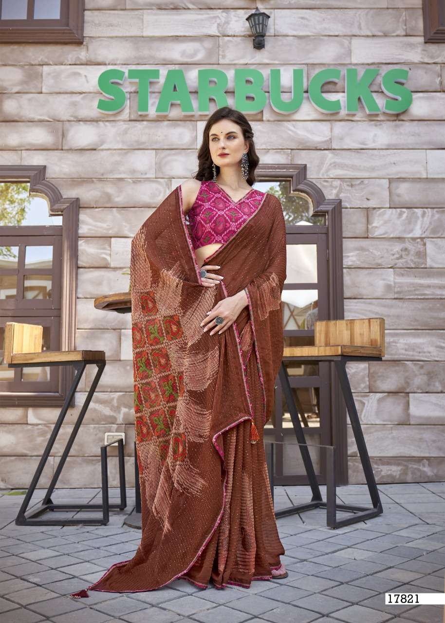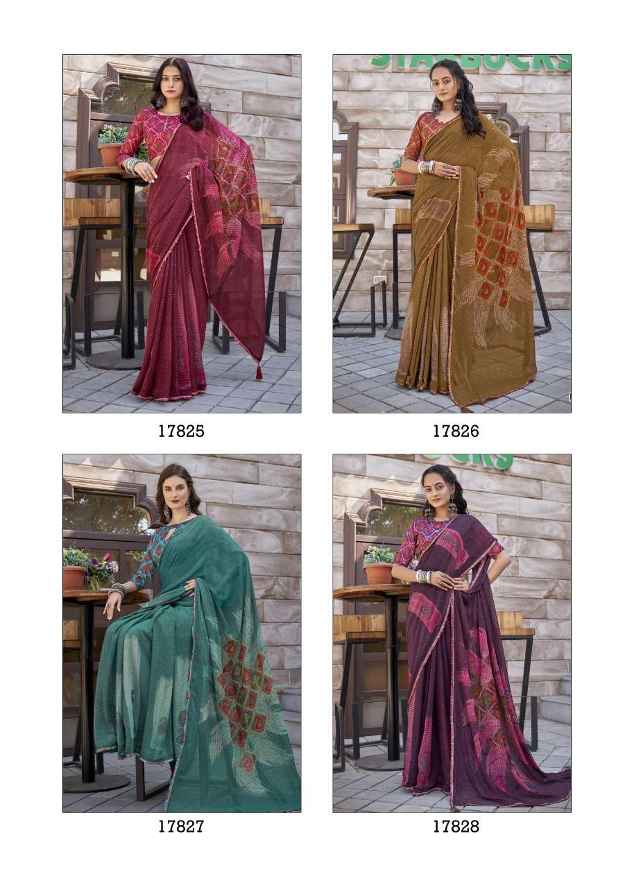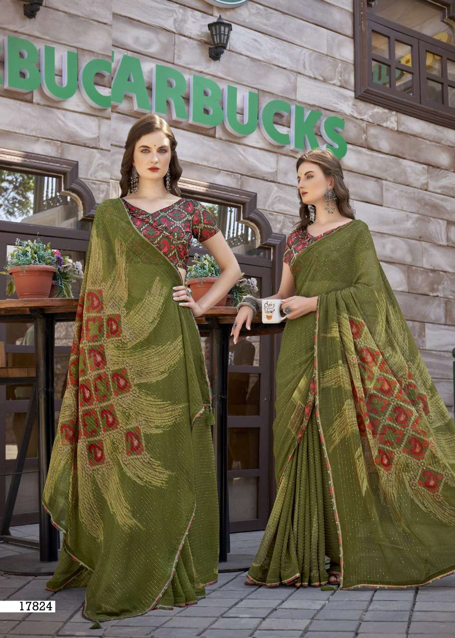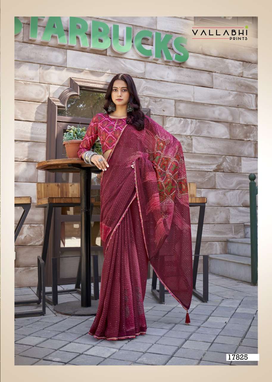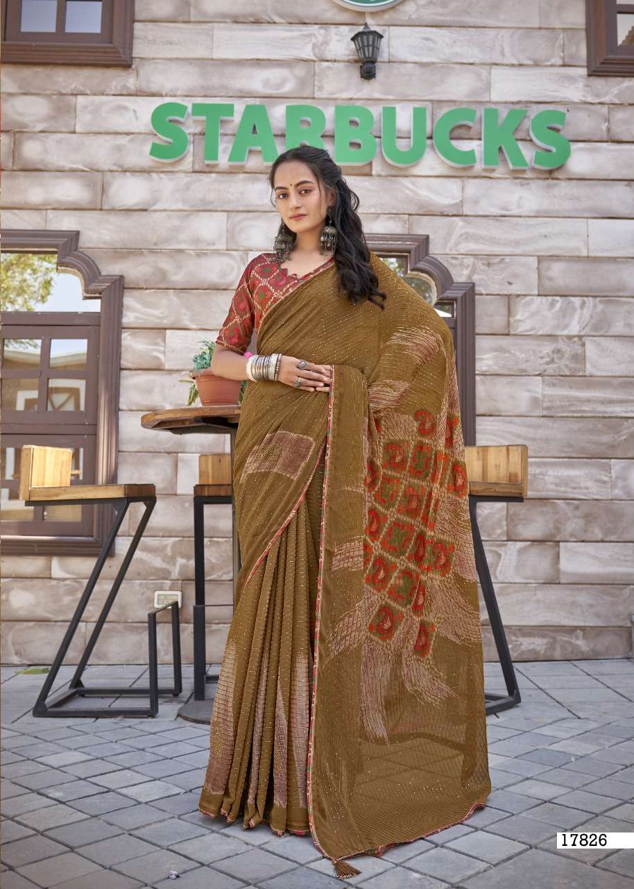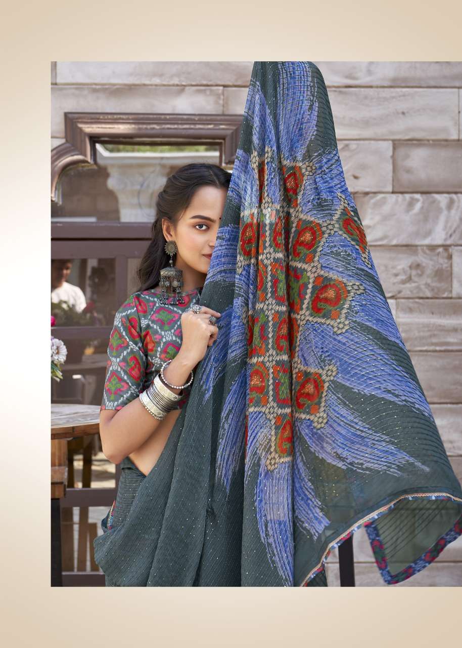 izzara by vallabhi krochet georgette printed fancy sarees
