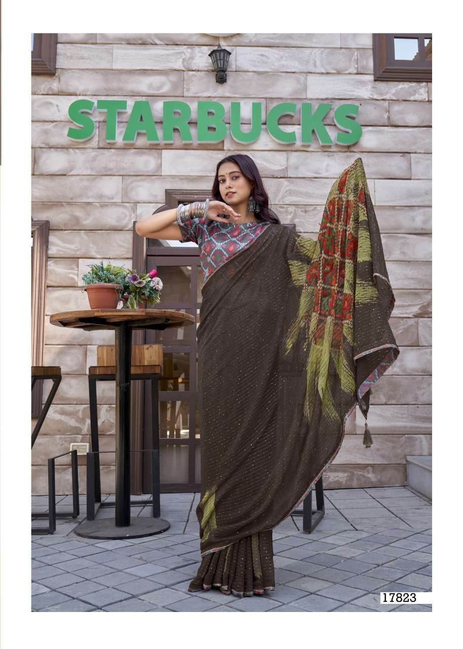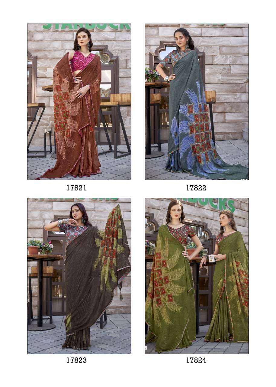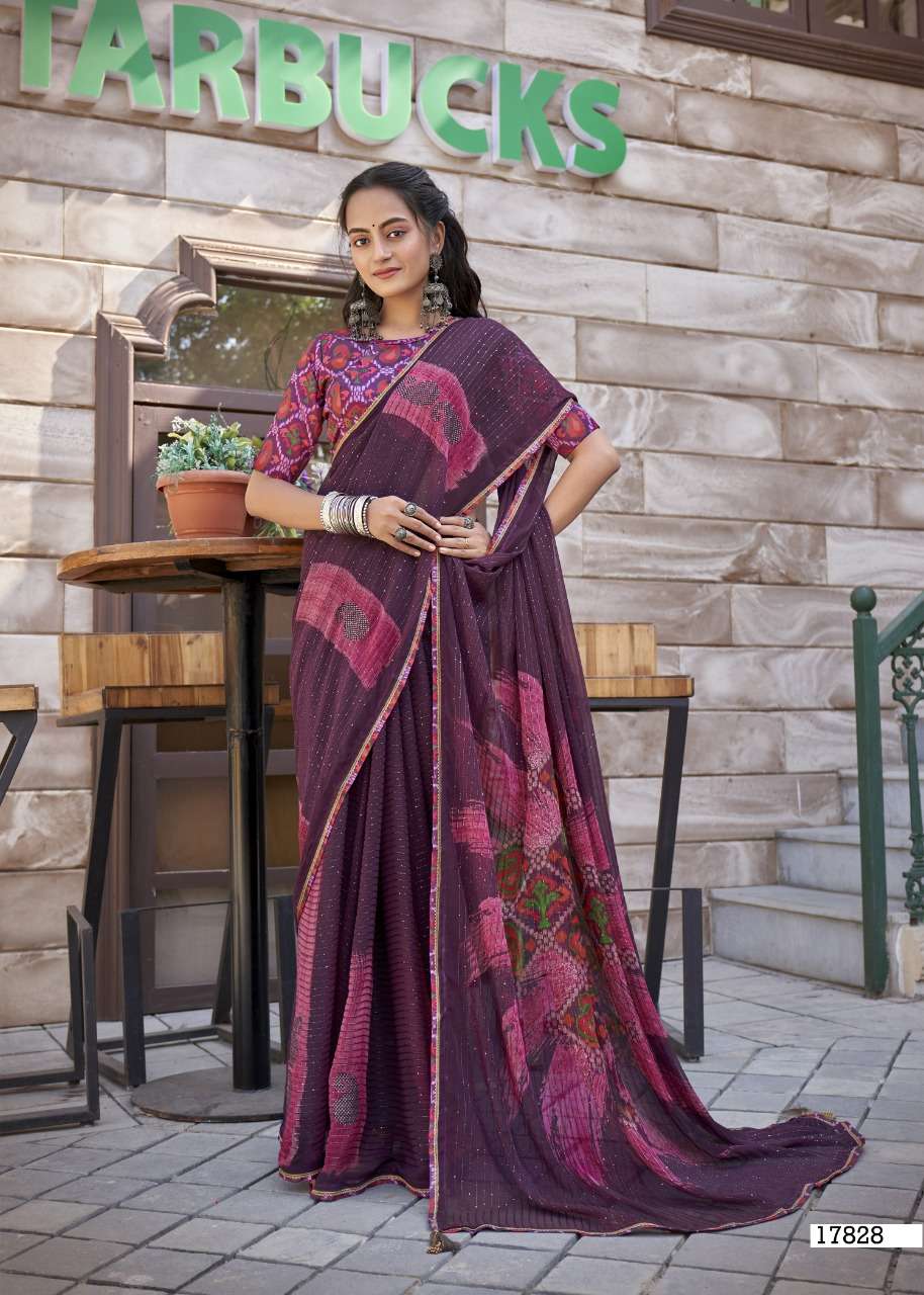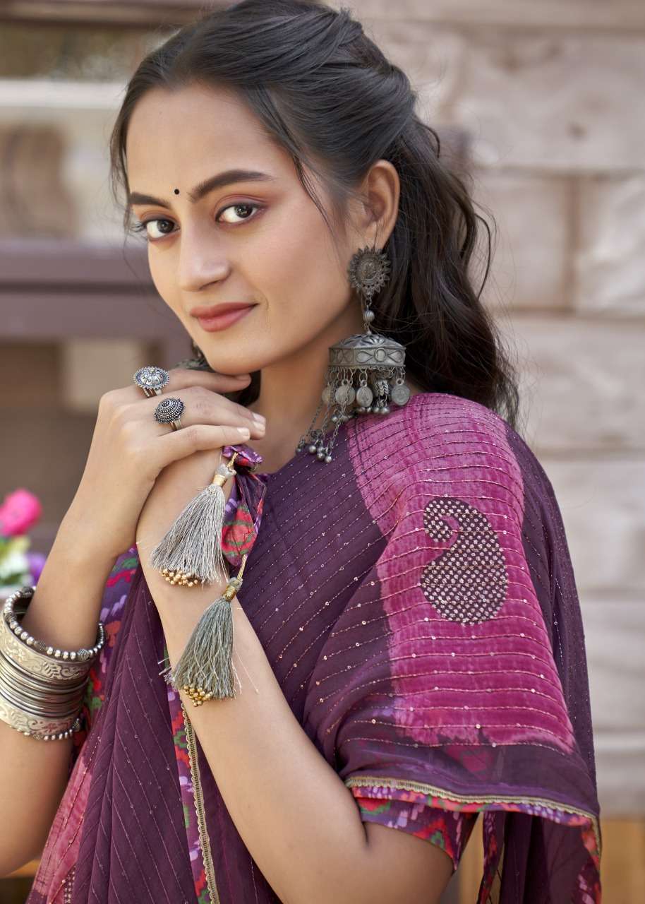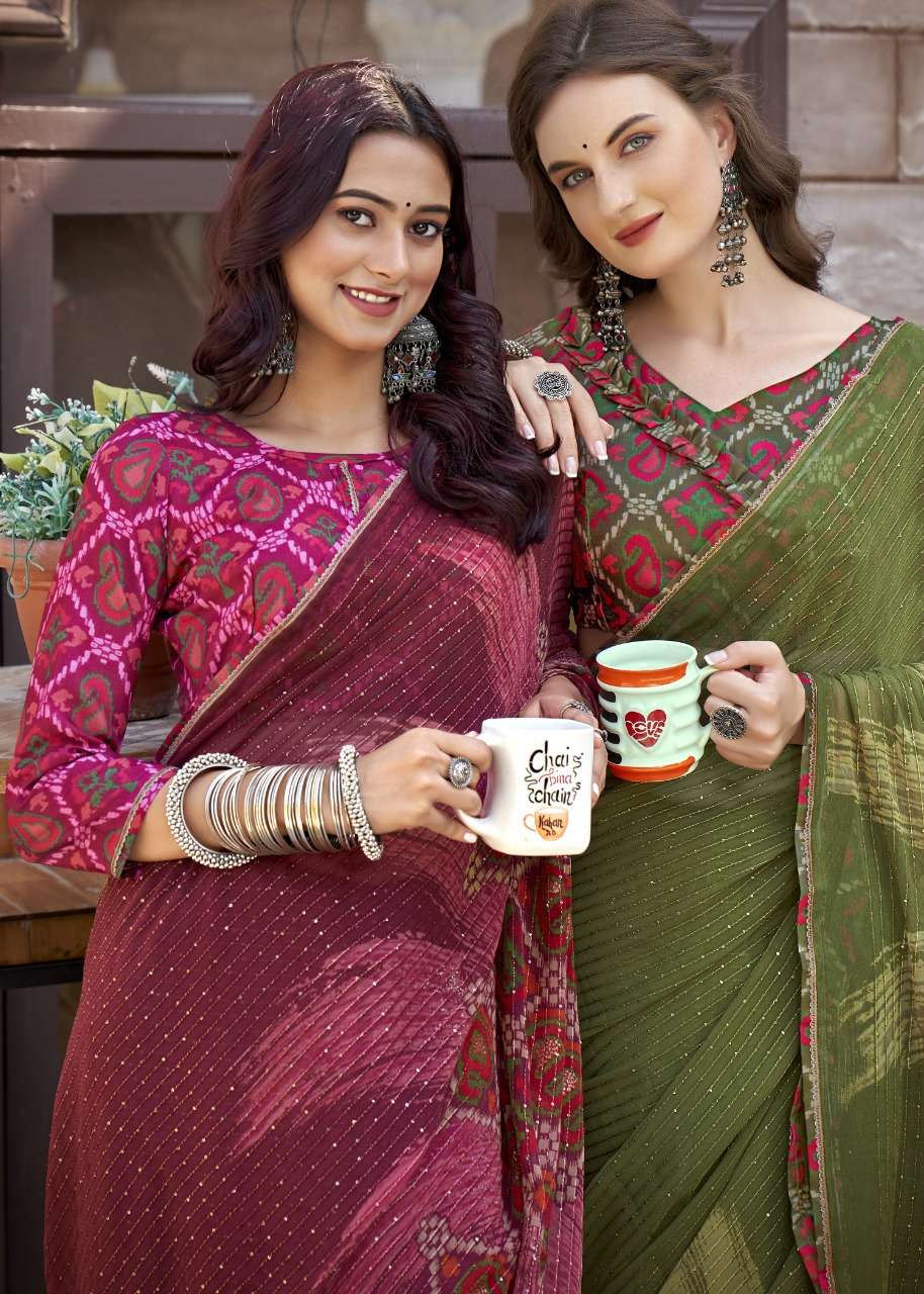 izzara by vallabhi krochet georgette printed fancy sarees