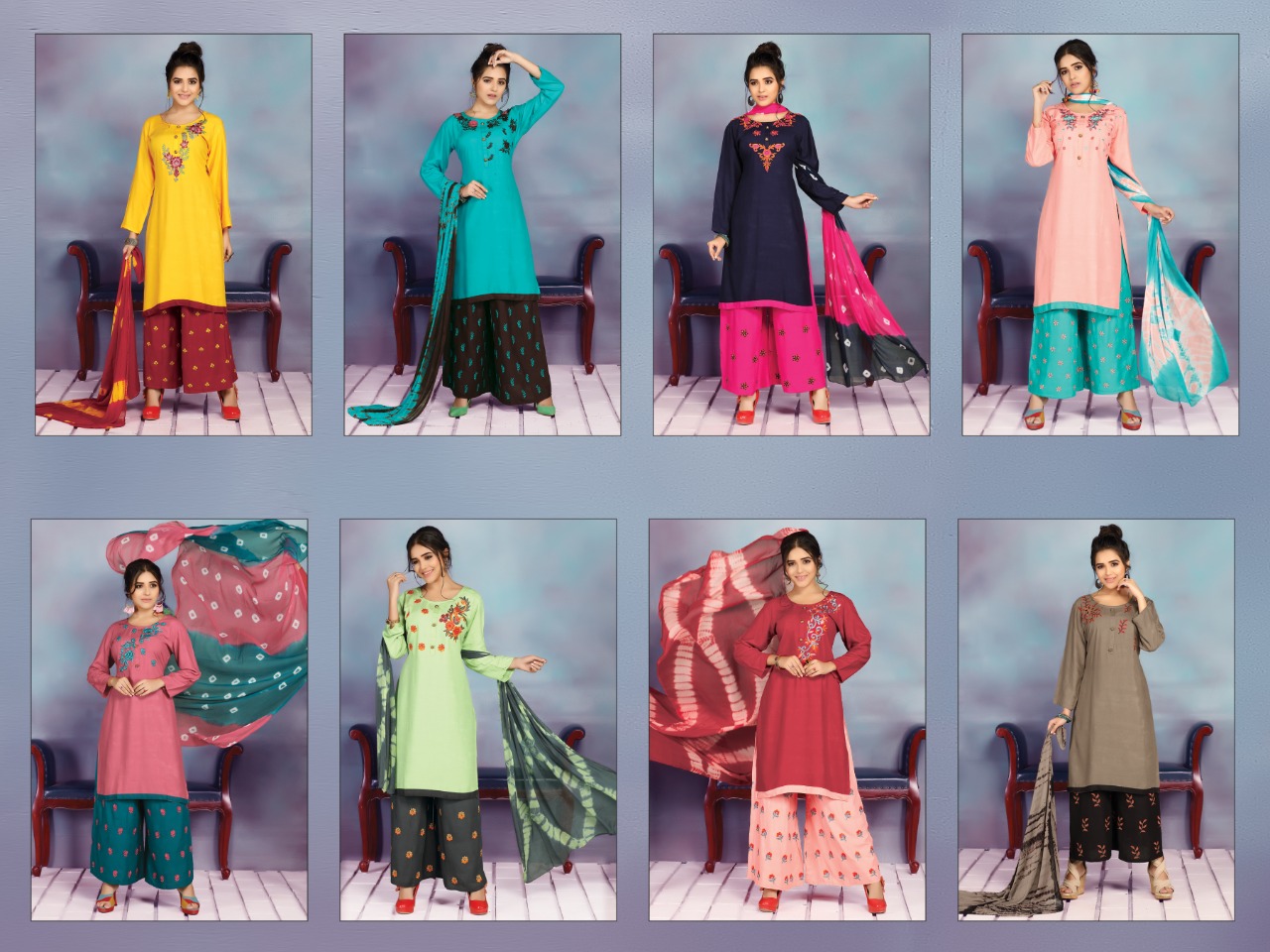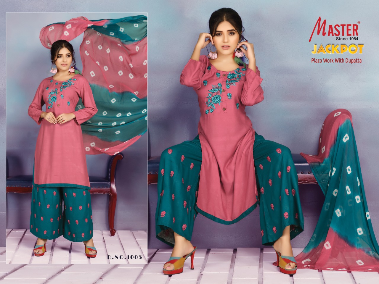 Jackpot By Master Rayon 3 Piece Top Plazzo With Dupatta Collection