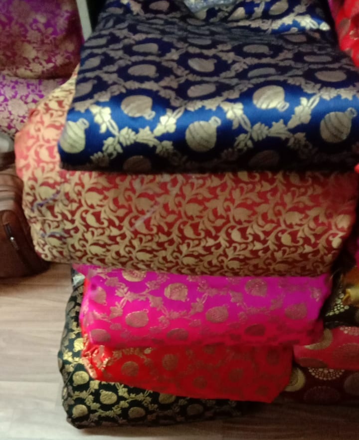 A Fancy jacquard fabric, woven from lustrous Katan Silk yarns and zari, this fabric is a perpetual exemplification of royalty. A fabric of dreams, meticulously hand-woven by the weavers of Surat, adds to the fabric’s exclusiveness and glory. A heavy yet soft fabric weighing with a width of 44/58 inches, our jacquard fabrics is available in a wedding color palette with accentuated florals, ornamenting the fabric; design your own wedding lehenga, sherwani, indo-western anarkali, blouses or use them for designing statement clutches, juttis and more.