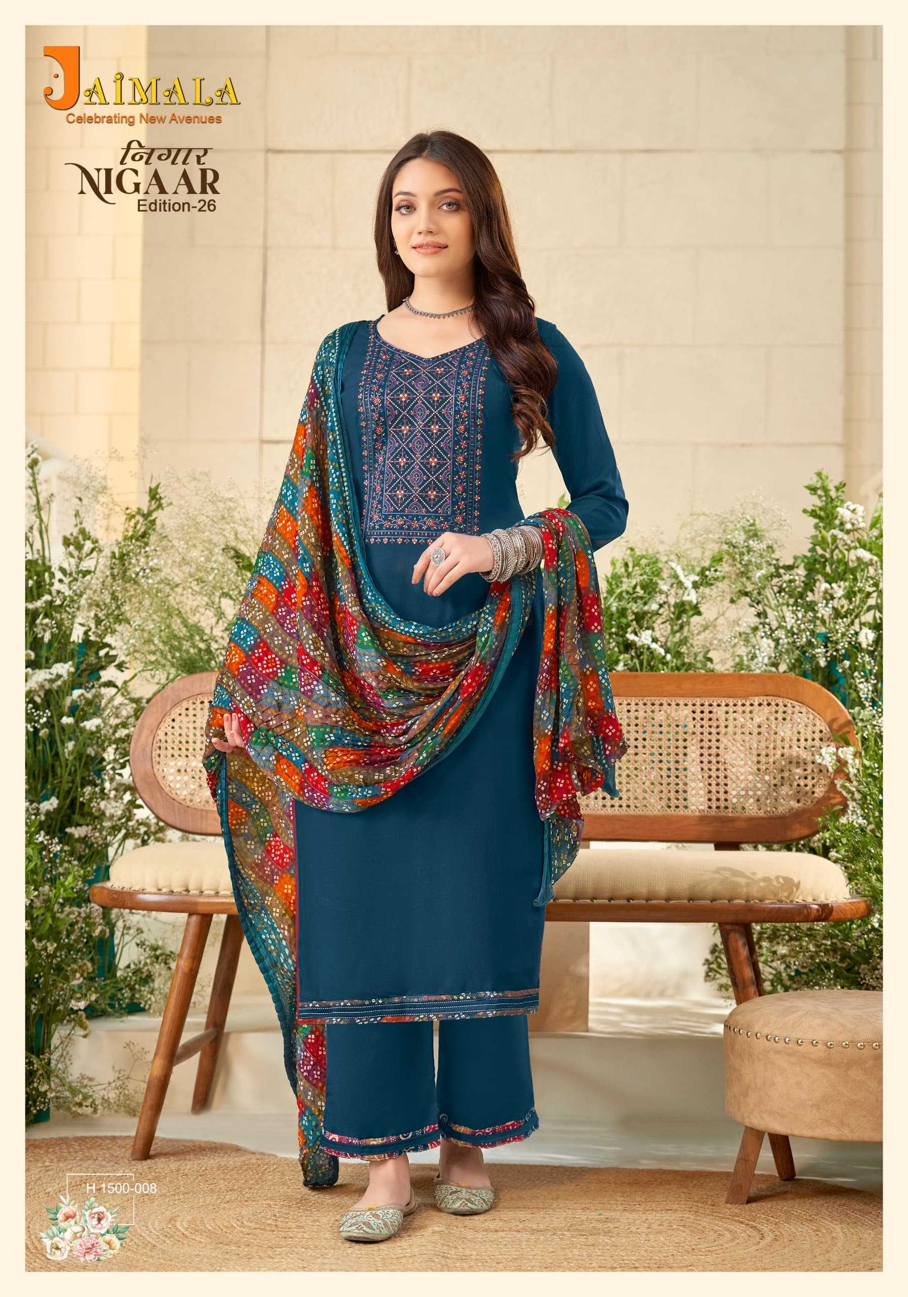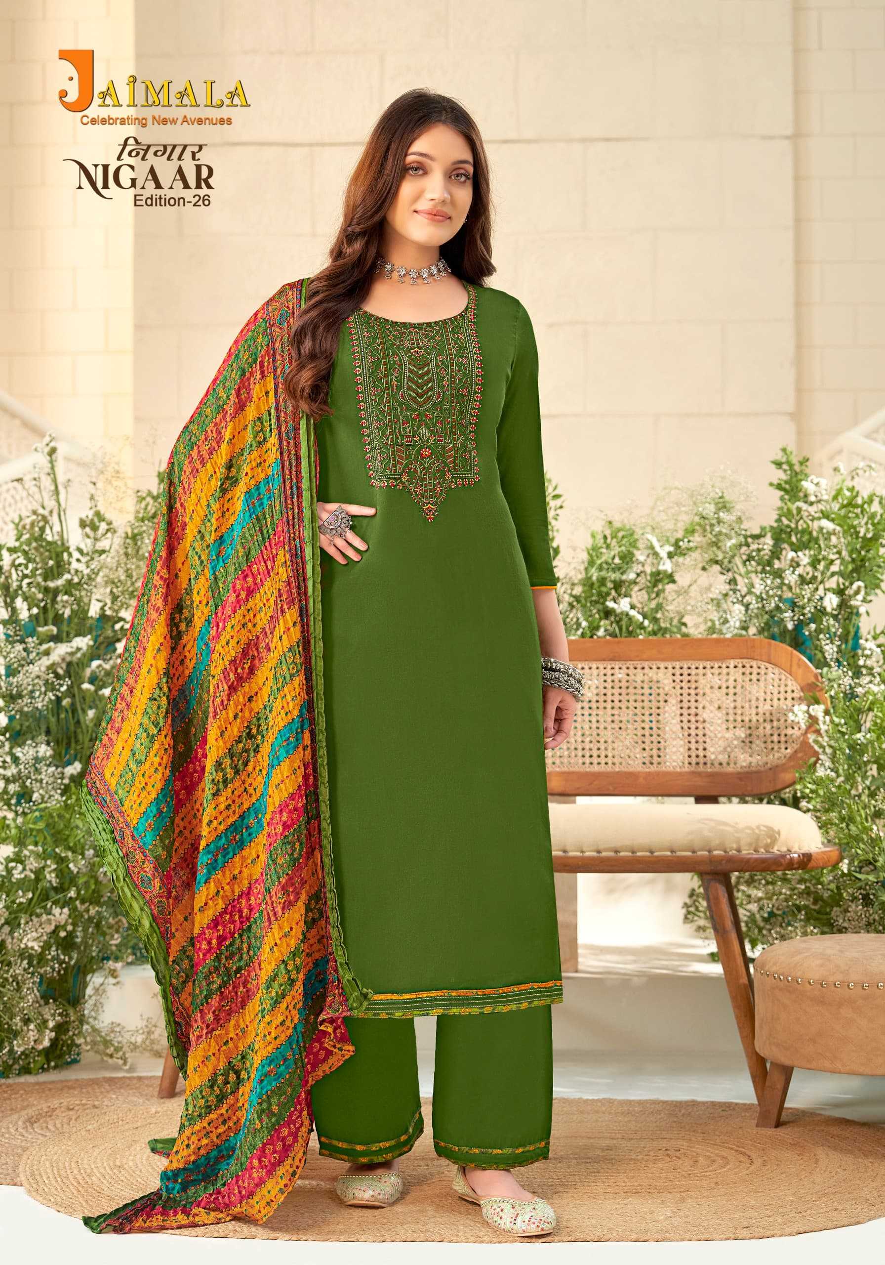 jaimala nigaar vol 26 beautiful unstitch salwar kameez with bandhej dupatta