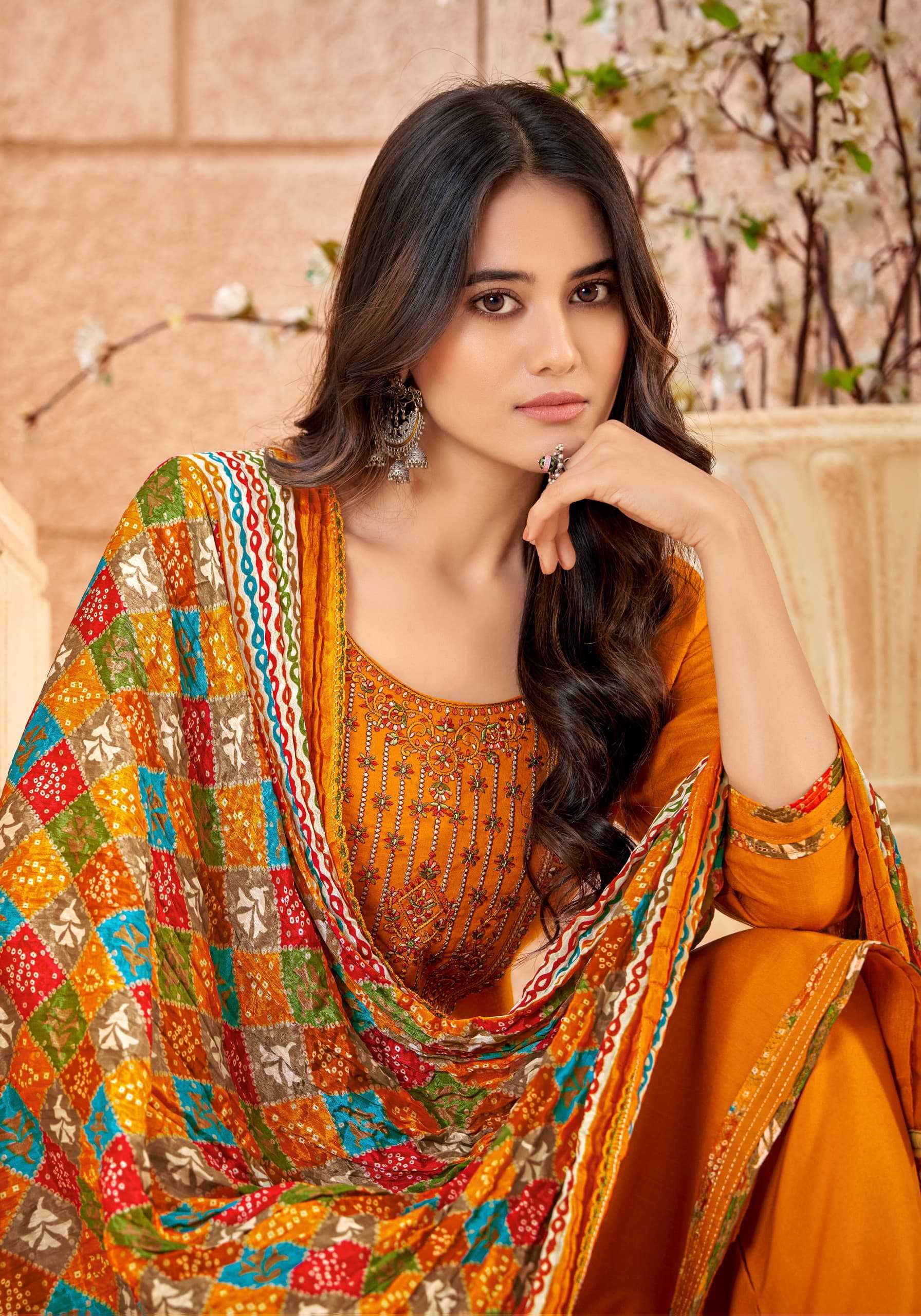 👑 JAIMALA by Alok Suit - Make in India 👑 💃 Fabric Details: 💃 👖 BOTTOM: Pure Reyon Solid 🧣 DUPPATTA: Pure Designer Bandhej Crush Dupatta 💫 Rate: 599/- +5% GST 8 pcs JAIMALA Brand by Alok Suit