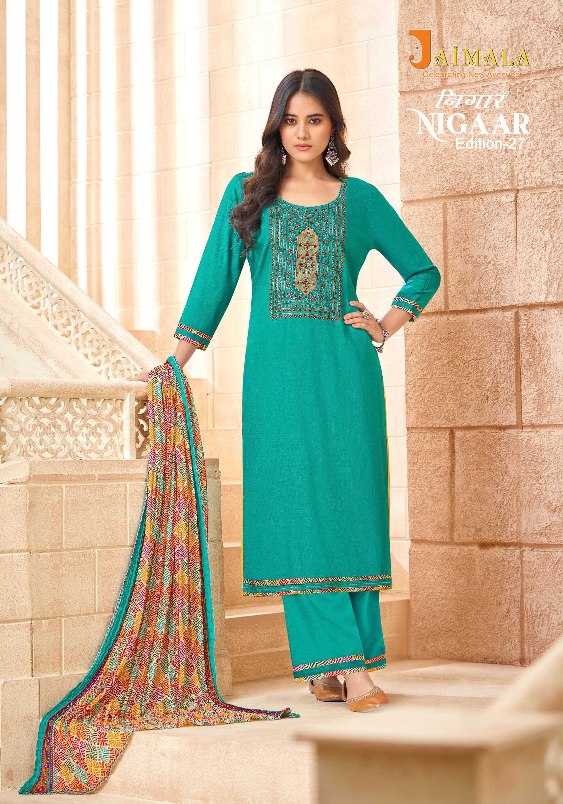 jaimala presents nigaar 27 amazing look rayon salwar suit dress material