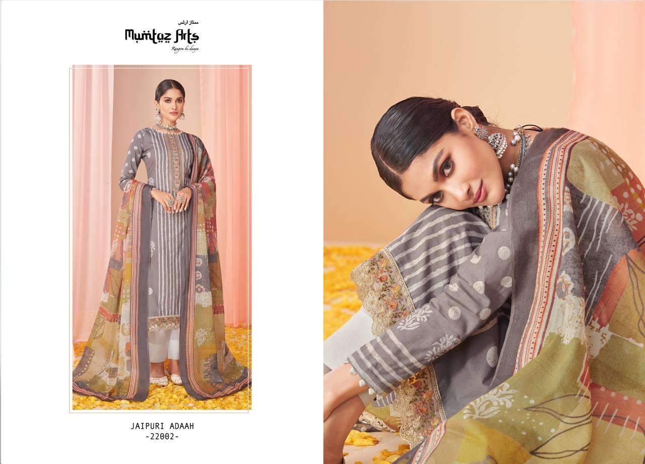 jaipuri adaah vol 3 by mumtaz arts digital print work cotton ladies suit wholesaler