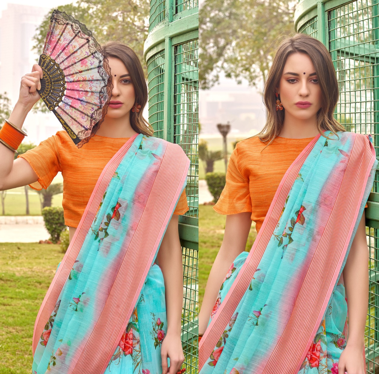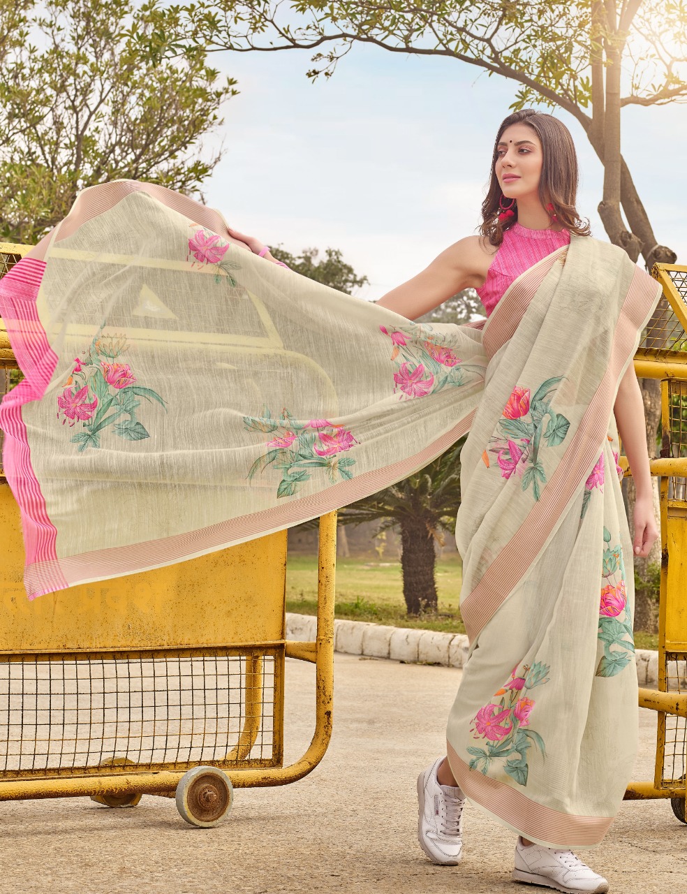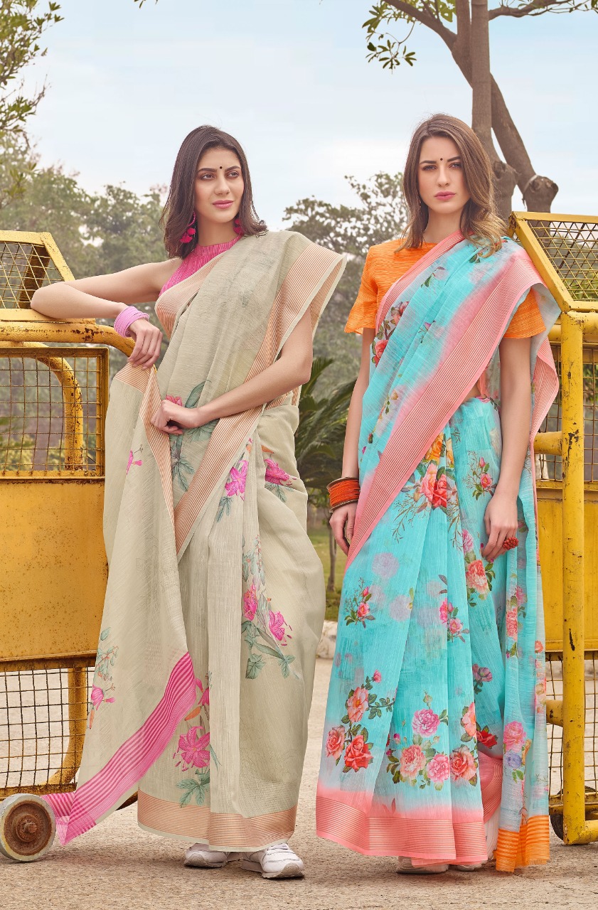 Jaipuri Linen Vol 3 By Shangrila Linen Cotton Printed Saree For Summer