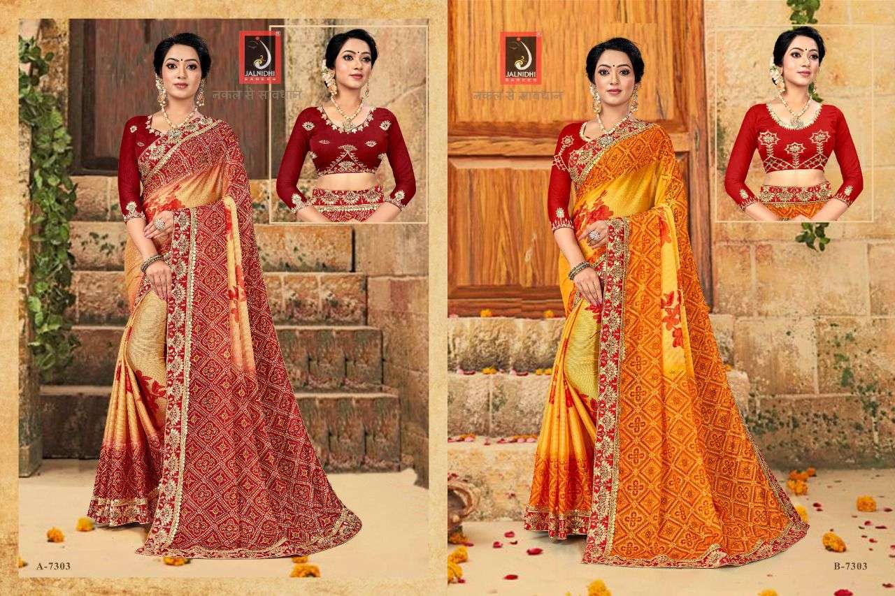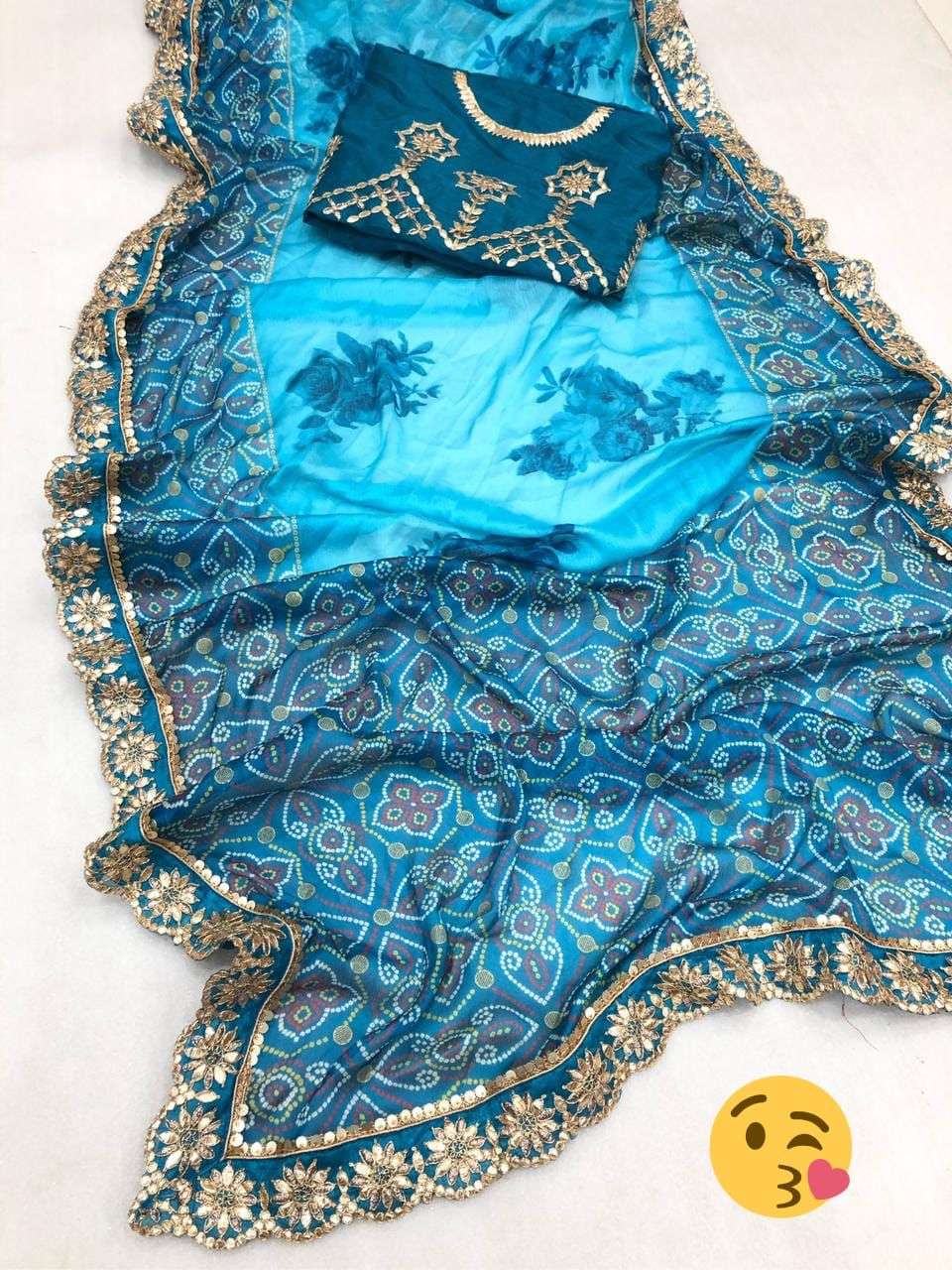 Jalnidhi Aasopalav Moss Chiffon Bandhani Fancy Saree
