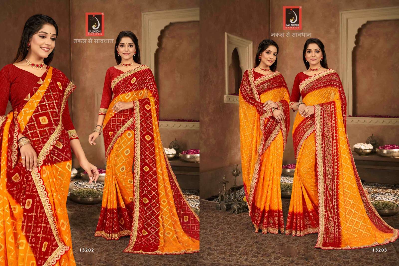 jalnidhi present rukmani designer amazing bandhani saree supplier