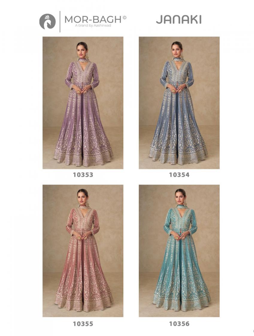 janaki by mor bagh aashirwad chinon silk readymade designer skirt kurti with dupatta